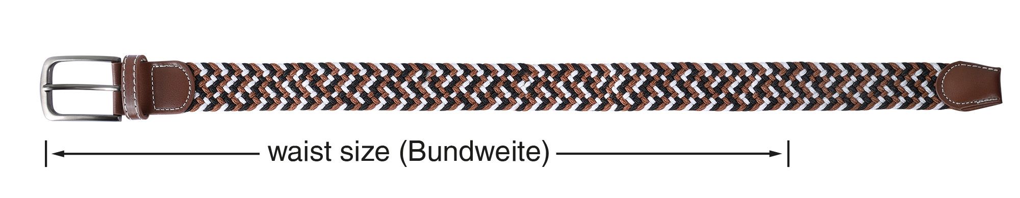 Onze nieuwe stoffen riem is een uiterst veelzijdig accessoire dat perfect past bij een sportieve look. Onze riem is gemaakt van hoogwaardige materialen en wordt gekenmerkt door het gevlochten patroon in de kleuren bruin, zwart en wit. De gevlochten riem krijgt een elegante touch door het bruine imitatieleer aan beide uiteinden van de riem.