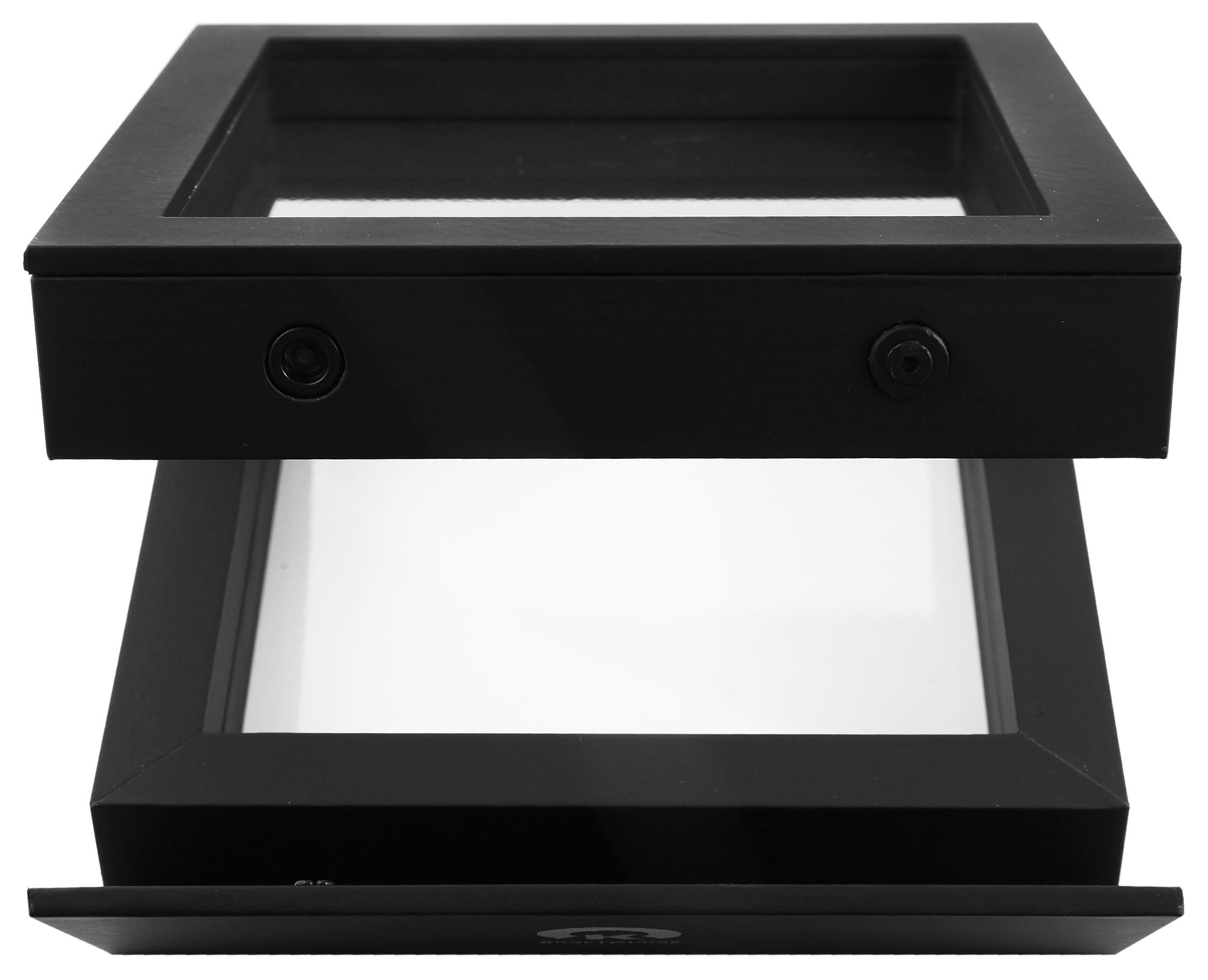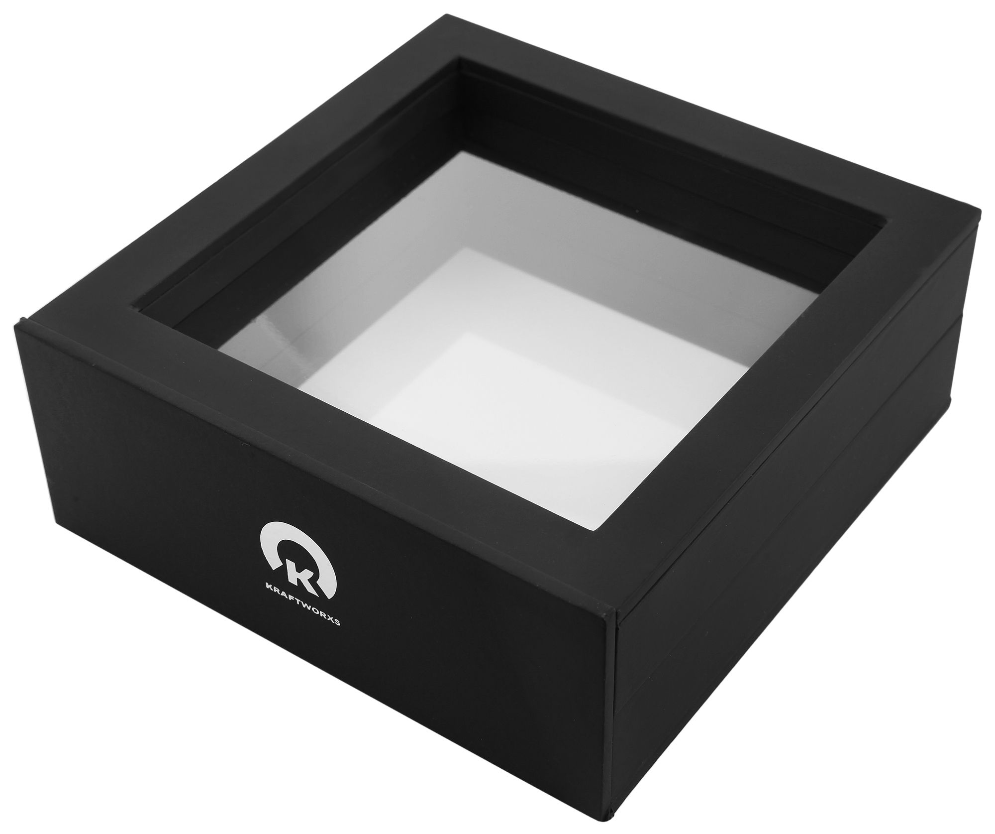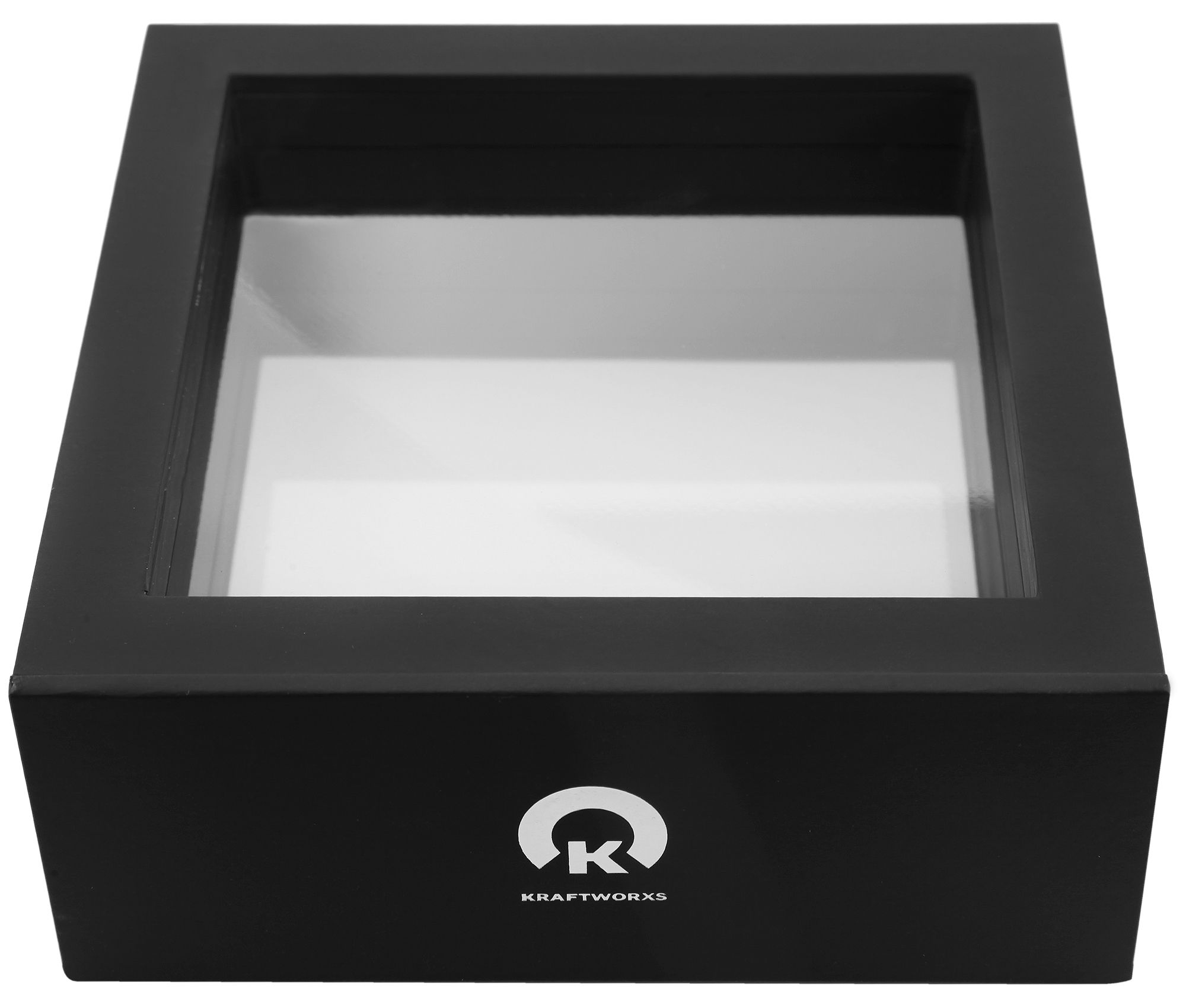 De zwarte horloge- en sieradendozen van het merk Kraftworxs zijn veelzijdig. Ze kunnen worden geopend als een boek met behulp van een drukknoopsluiting. Beide zijden zijn bedekt met een stevige transparante folie. U plaatst horloges, sieraden of accessoires in het midden en sluit het doosje. Je favoriete stukken zitten nu opgesloten en zijn dus ideaal om te bewaren of te vervoeren. Het is ook mogelijk om de goederen in de doos uit te stallen en te presenteren. Met de meegeleverde horlogeclip is het bijzonder eenvoudig om horloges in de doos te plaatsen en te presenteren. Dankzij de folie aan beide zijden zijn de goederen vanuit alle hoeken te bekijken en bovendien beschermd tegen invloeden van buitenaf. Een echte blikvanger die in geen enkele winkel mag ontbreken.