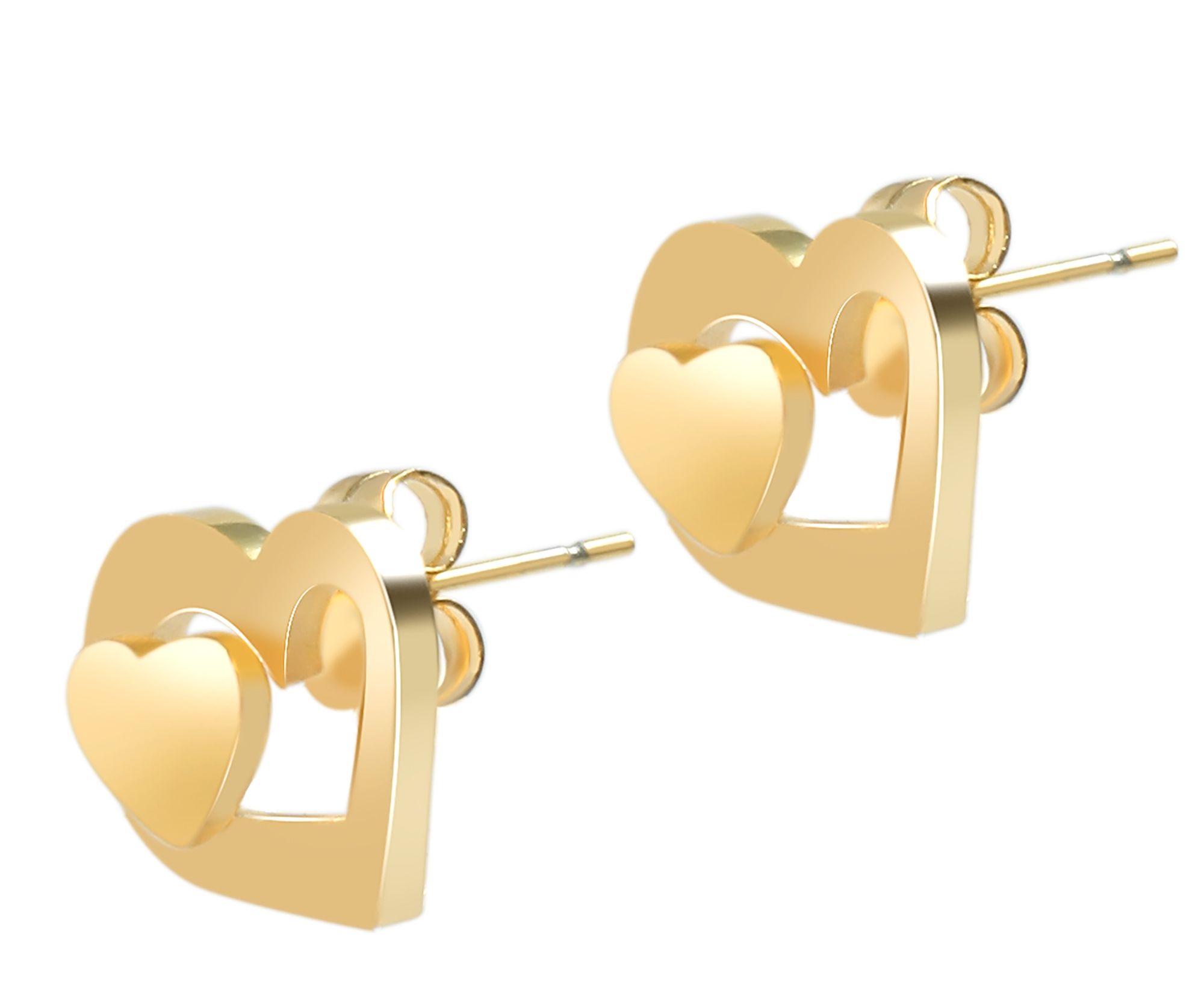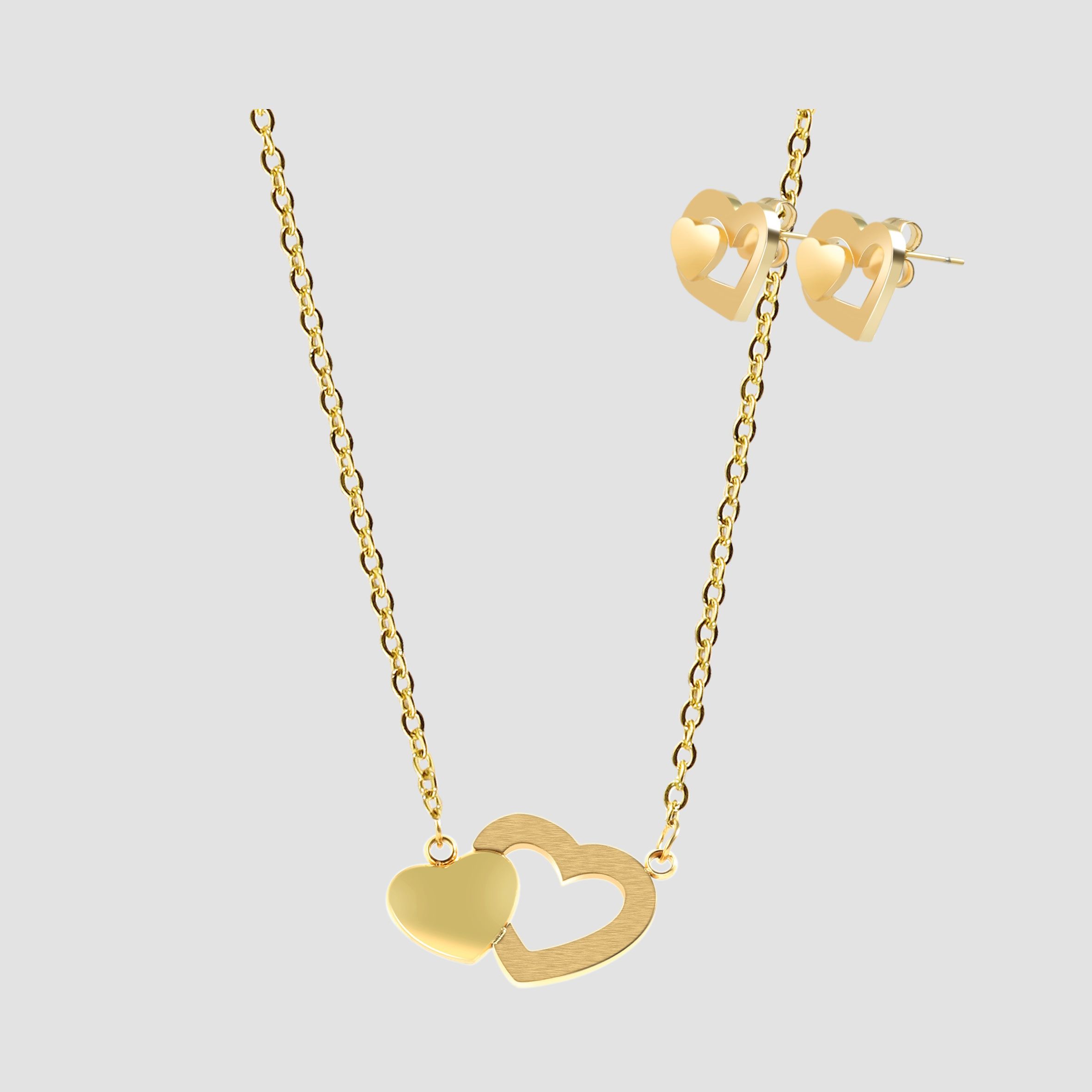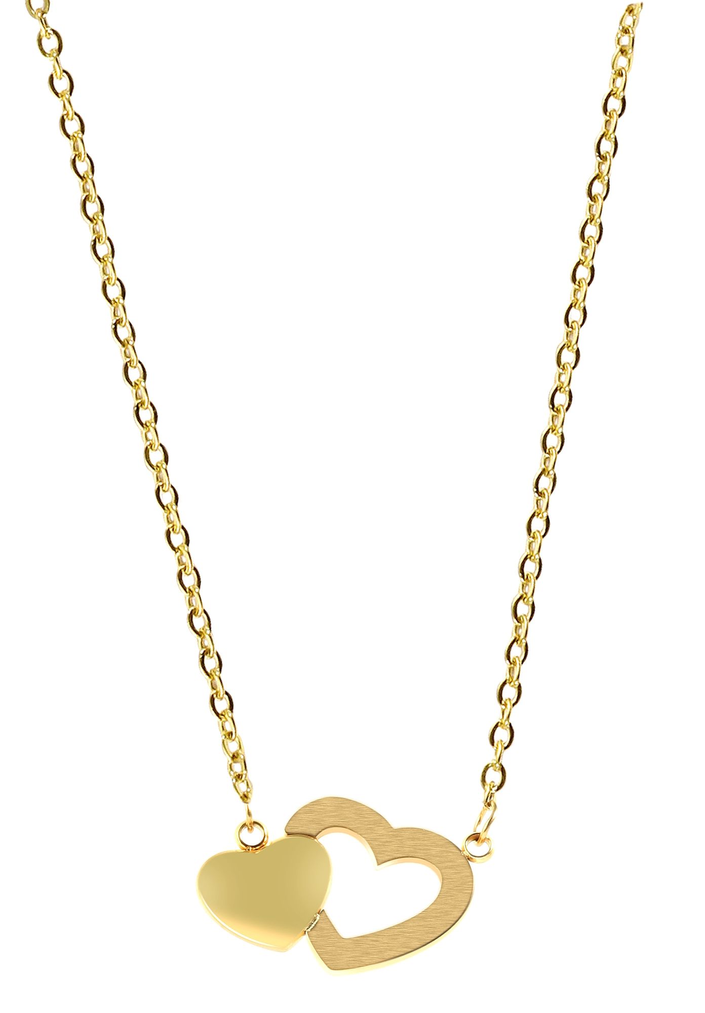 Productinformatie "Accent sieradenset met halsketting en oorstekers, roestvrij staal, hart, goudkleurig"