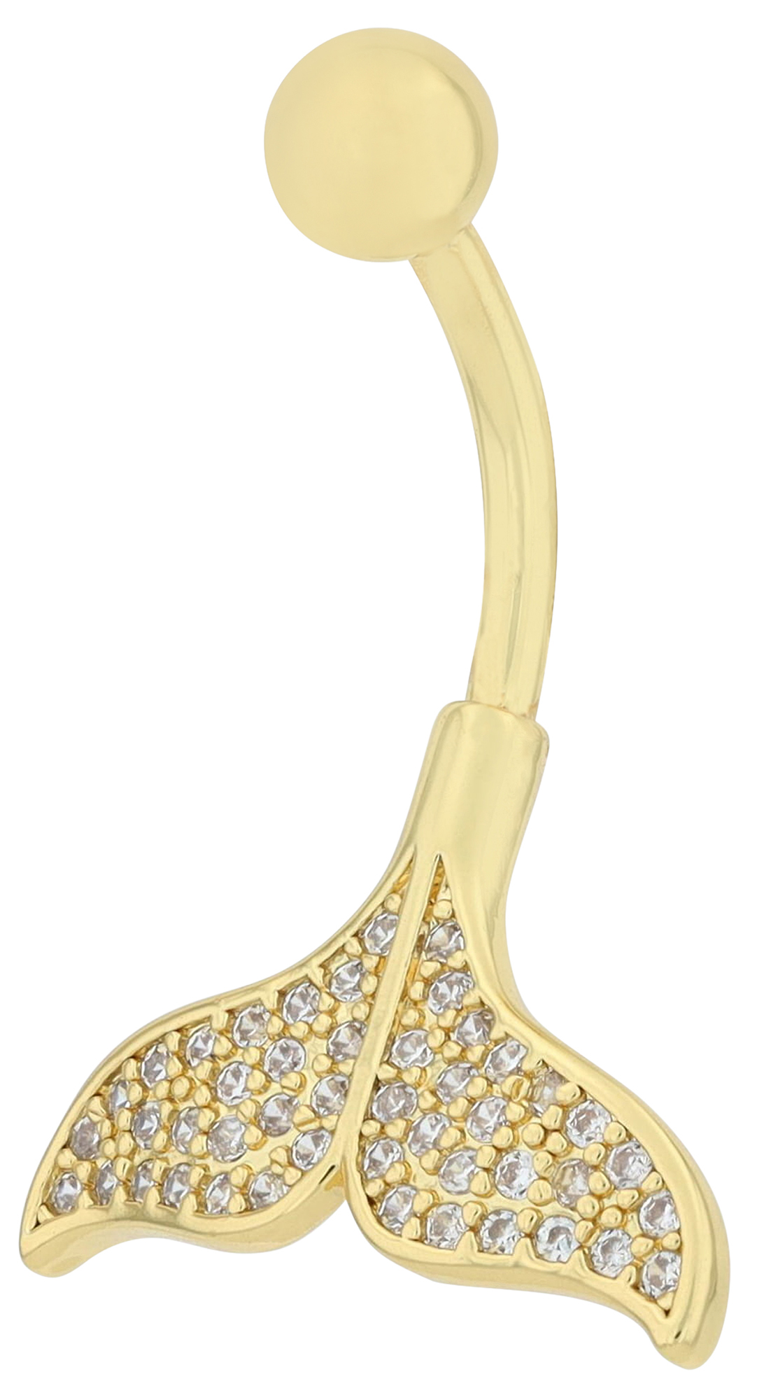 Productinformatie ""Emy" Edelstahl-Bronze Bauchnabelpiercing. Länge 10 mm/ Stärke 1,8 mm, Walflosse, goldfarben"