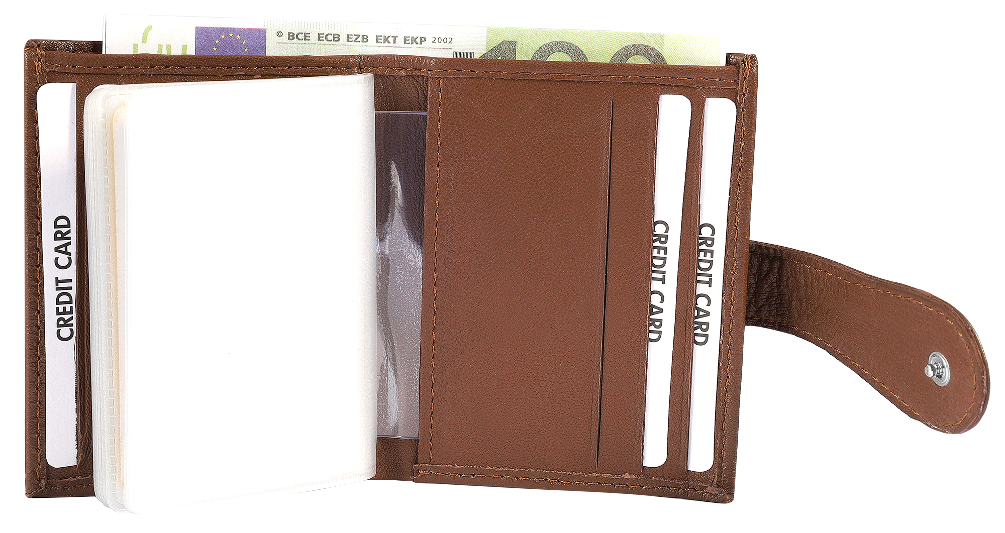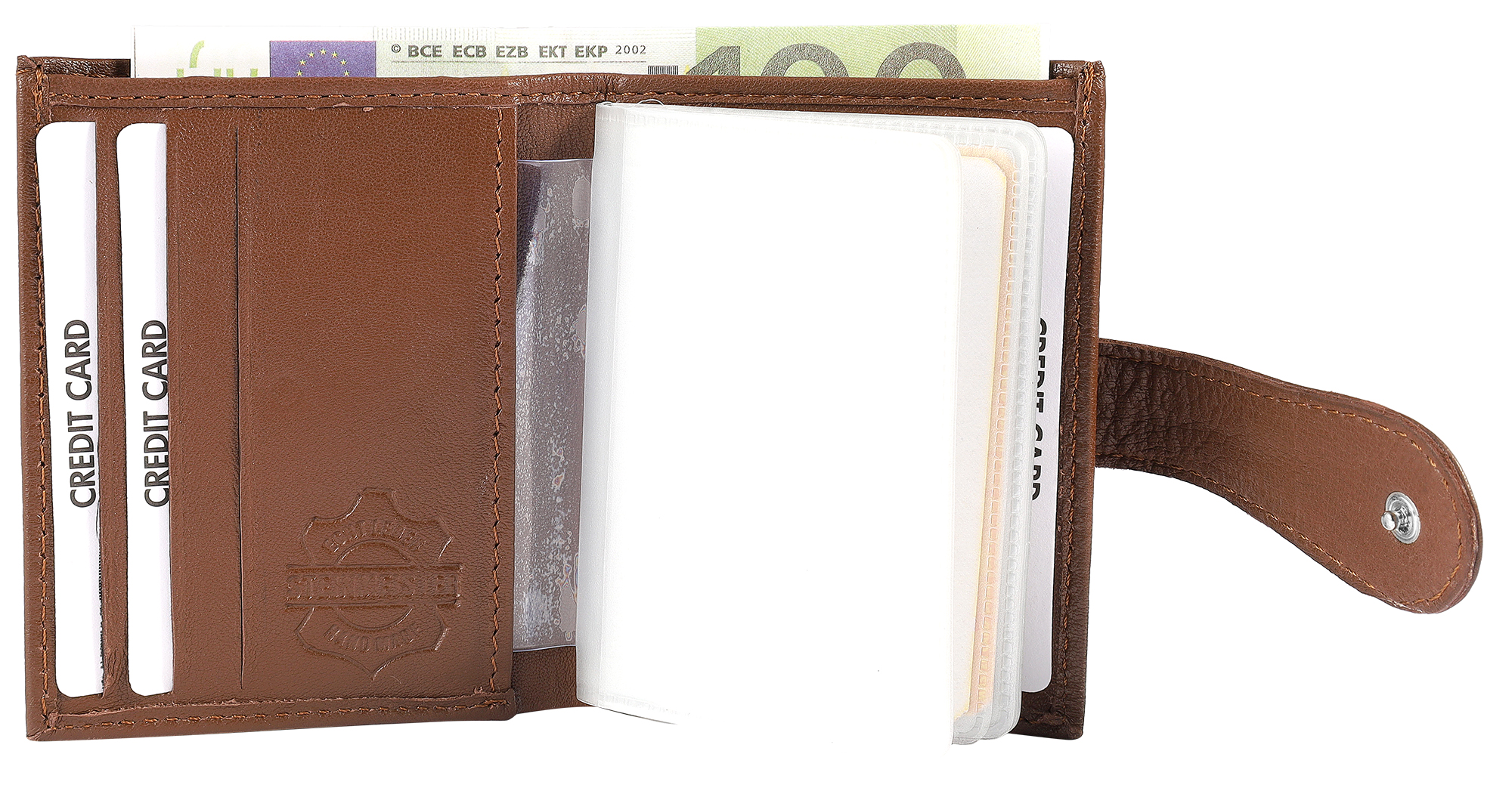 Deze mooie kaarthouder met geldvak is praktisch, klein en ziet er elegant uit. Dit prachtige stuk is gemaakt van echt lamsleer, waardoor de kaarthouder bijzonder zacht aanvoelt en zorgt voor een licht gewicht en fijne poriën. De afmetingen van de alledaagse metgezel zijn ook indrukwekkend met een lengte van 8,2 cm, een breedte van 10 cm en een diepte van 1,4 cm. Met 22 vakjes voor creditcards is de portemonnee uitstekend uitgerust en kun je je belangrijke kaarten organiseren. Pasjes en biljetten worden vastgezet met een drukknoopsluiting, wat de portemonnee een aantrekkelijke vintage look geeft en tegelijkertijd praktisch is. De portemonnee is verkrijgbaar in veel verschillende kleuren.