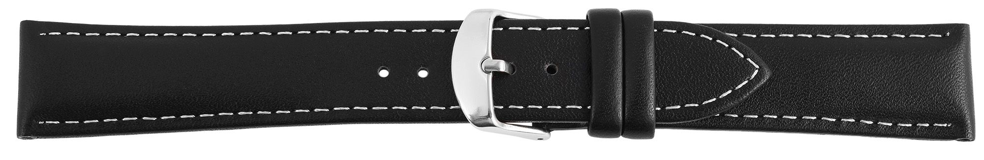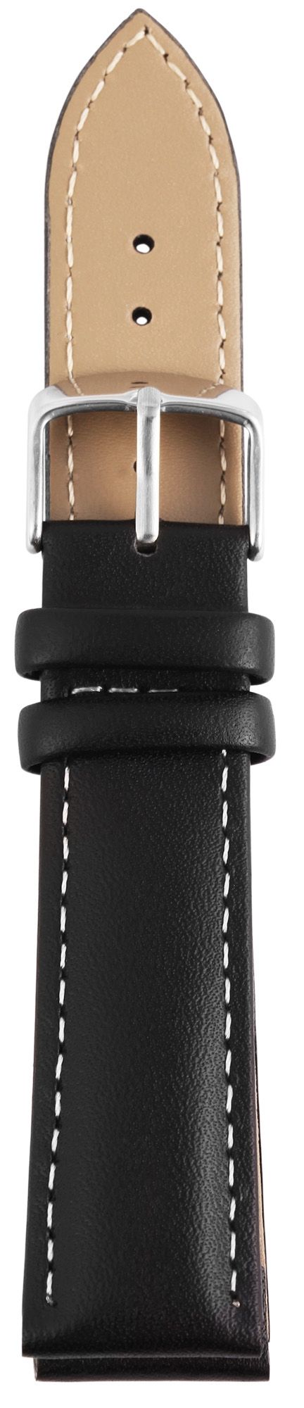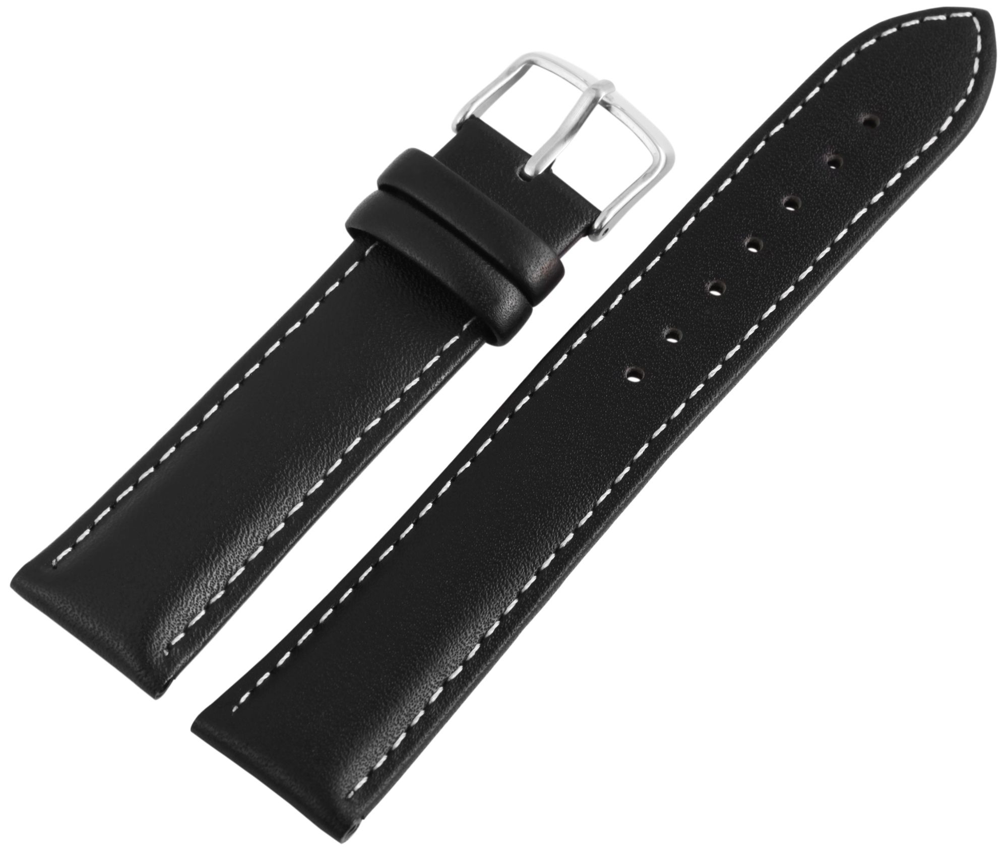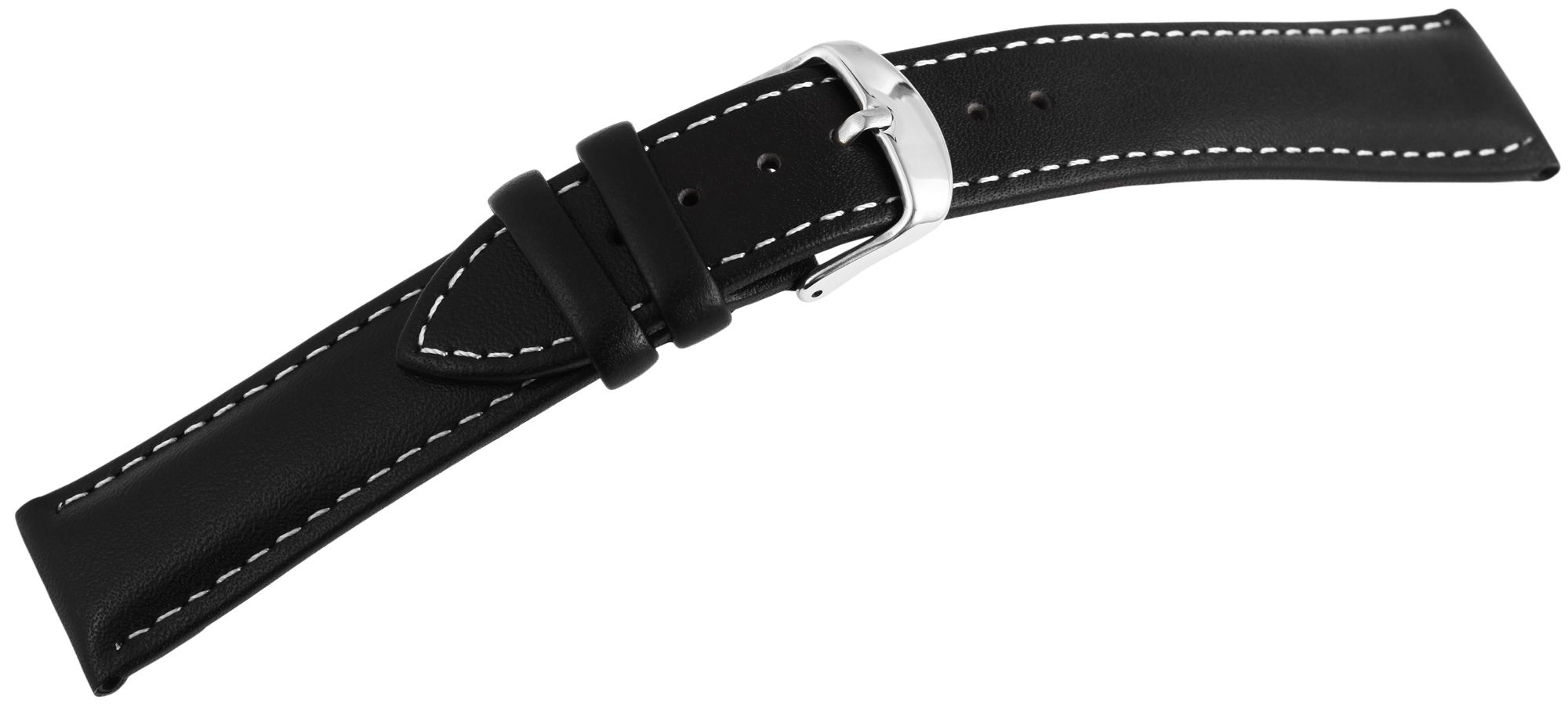 Productinformatie "Echt leren horlogeband, zwart, witte stiksels, 14 mm"