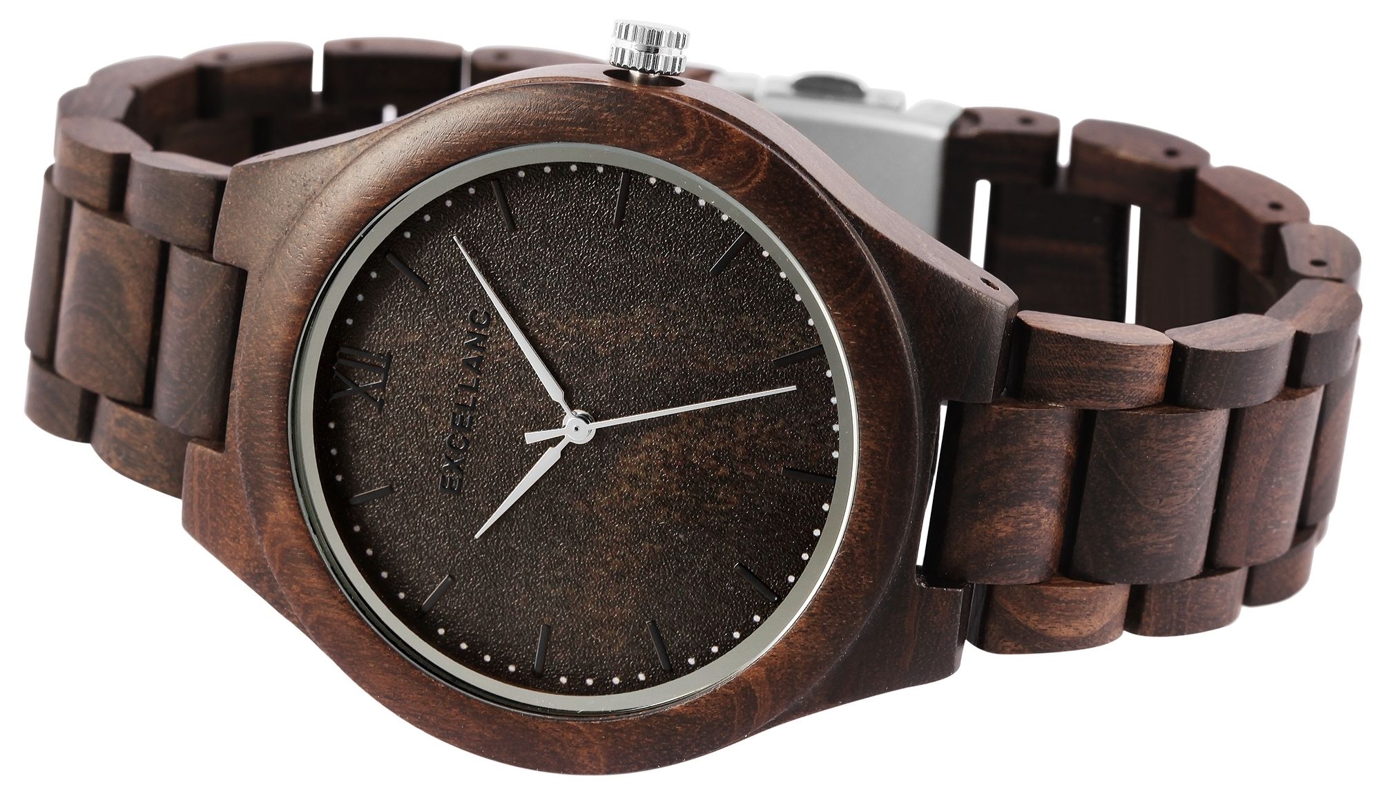 Productinformatie "Excellanc Herrenarmbanduhr aus schwarzem Sandelholz"