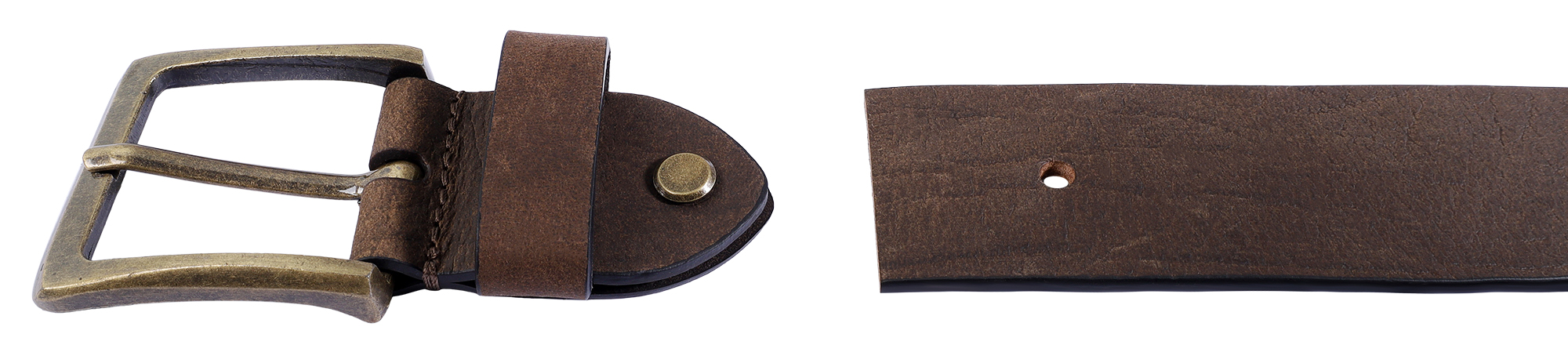 Gemaakt van 100% echt buffelleer met een sterke dikte van 4 mm, biedt deze riem een tastbaar gevoel van hoge kwaliteit. De lichte natuurlijke littekens zijn een teken van kwaliteit.