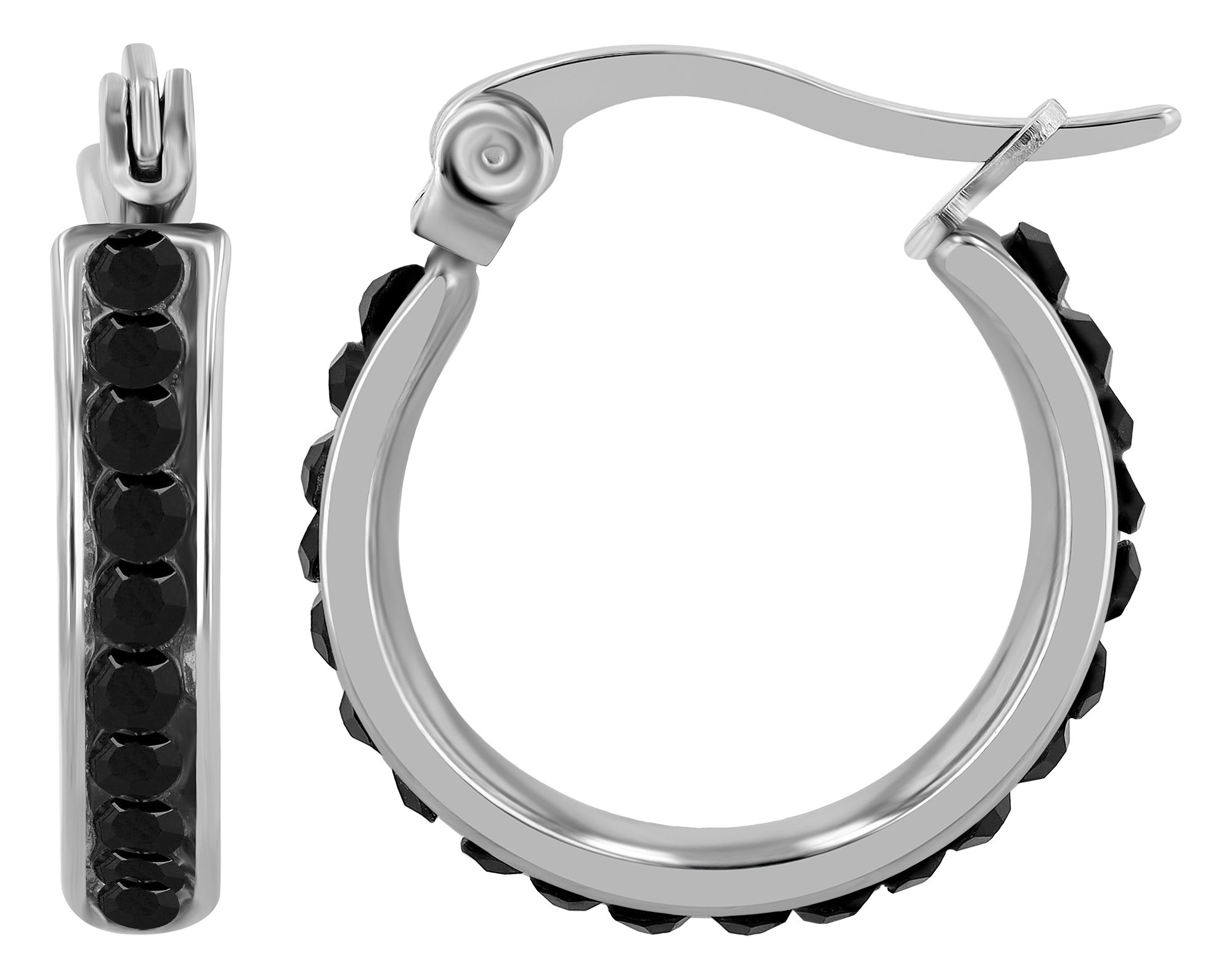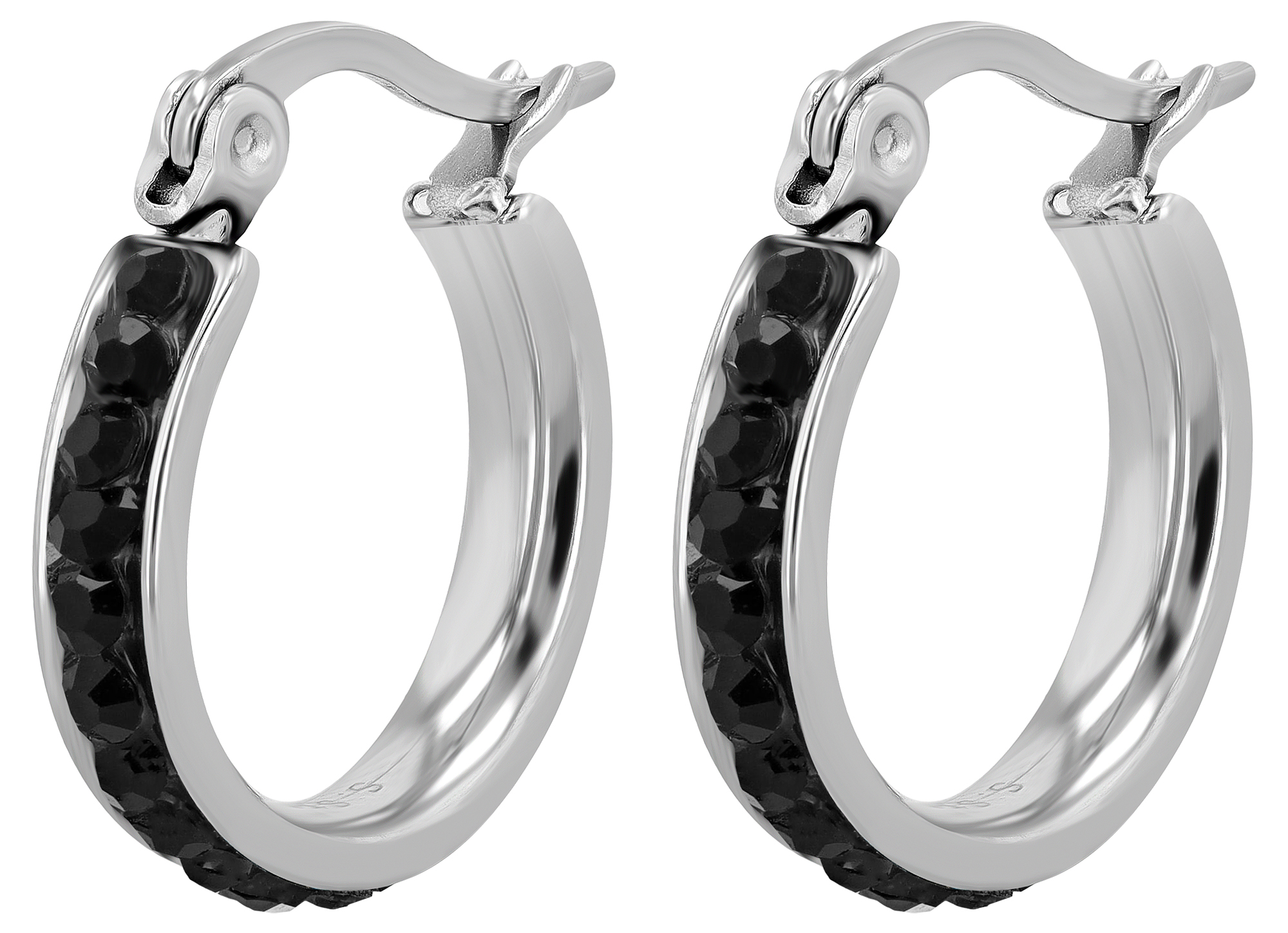 Productinformatie ""Sharon", Edelstahlcreolen, Similibesatz, silberfarben/schwarz, Ø 13 mm"