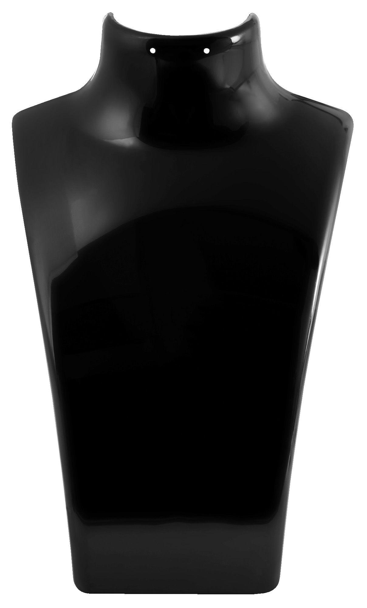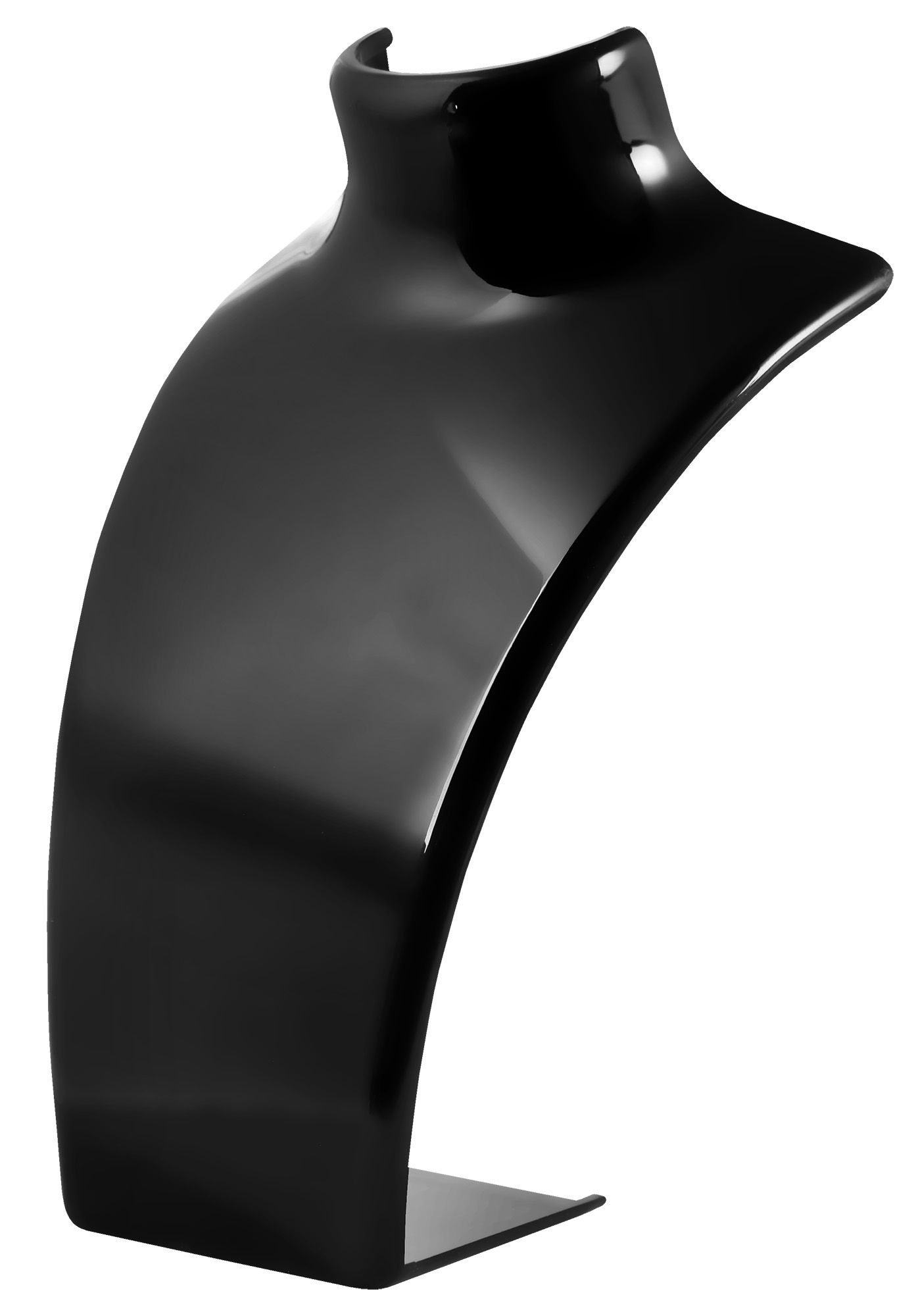 De zwarte plastic buste is een eenvoudige buste die geschikt is voor het tonen van kettingen en kettingen. Hij staat op een 6 cm lange, stevig verbonden voet en is over het geheel licht naar achteren gebogen. De sieraden liggen in de perfecte hoek op de buste zodat ze optimaal gepresenteerd kunnen worden. Daarnaast heeft de buste twee gaten in de 'nek' om verschillende soorten sieraden te kunnen bevestigen. De buste is 20,5 cm hoog, 13,5 cm breed en 12 cm lang. De buste is verkrijgbaar in zwart en wit. Het is een makkelijke manier om kettingen en kettingen optimaal te presenteren.