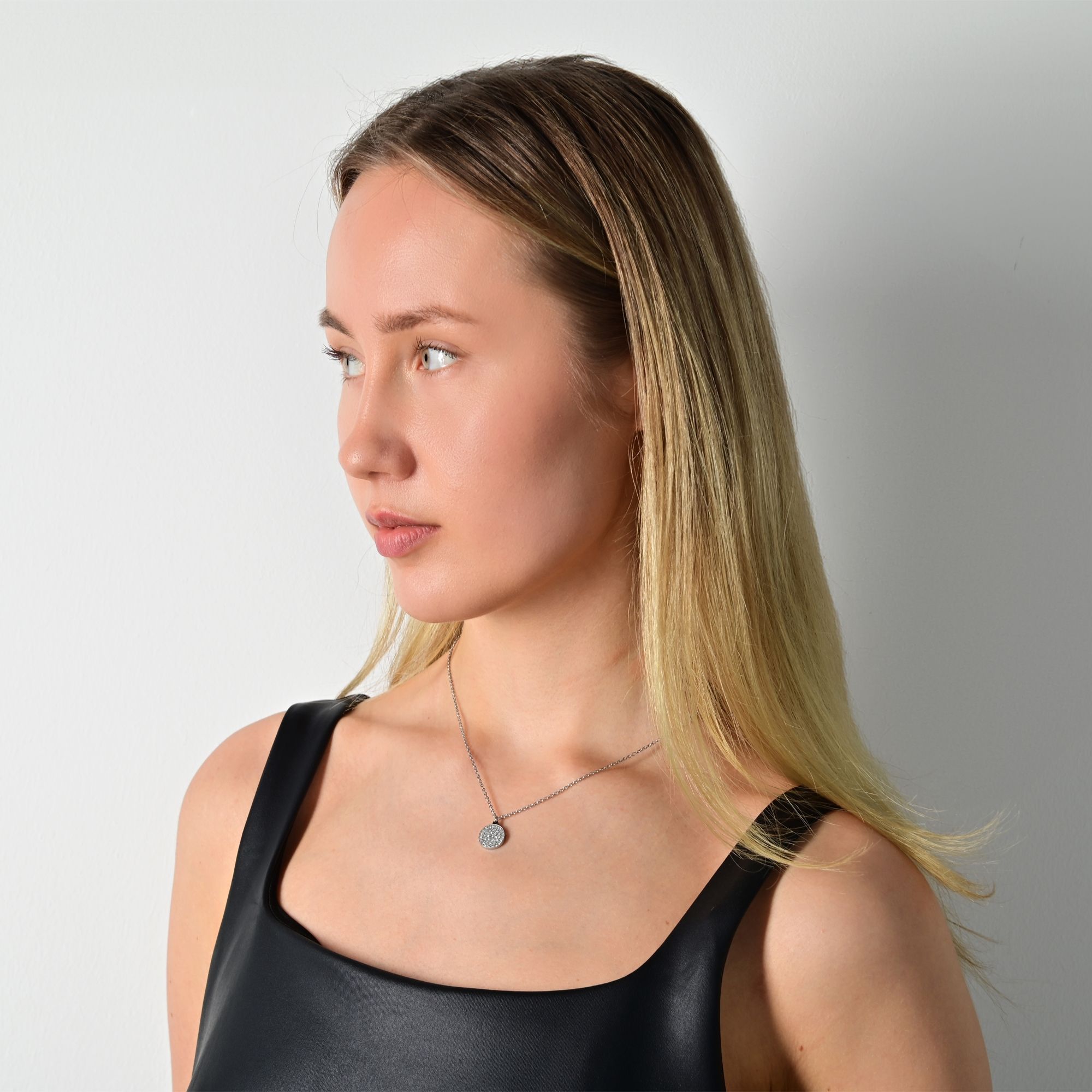 De zilverkleurige damesketting van het merk Akzent is gemaakt van roestvrij staal en heeft een ankerpatroon. De ronde hanger, die versierd is met similisteen, zorgt ervoor dat het sieraad een echte blikvanger is. De ketting is 43 cm lang, 2 mm breed en 1 mm dik. De hanger heeft een diameter van 12 mm en is 2 mm dik. De ketting kan worden geopend en gesloten met een karabijnsluiting, die ook van roestvrij staal is. Zowel de ketting als de hanger zijn hoogglans gepolijst en de achterkant van de hanger kan worden gegraveerd met kleine details.