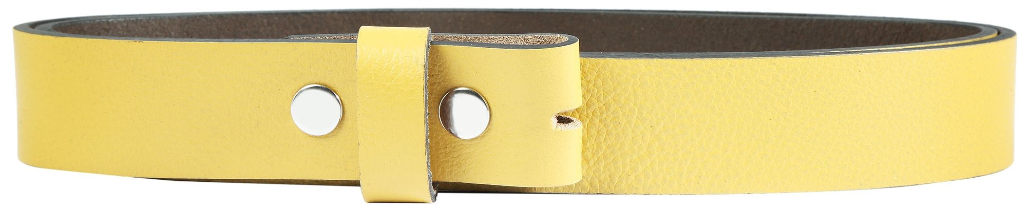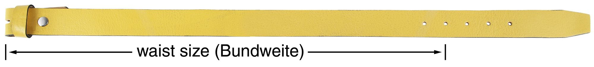 De gele riem van het merk Leonardo Verrelli is gemaakt van echt leer en heeft een gladde afwerking met een aangepaste nerf. Hij heeft een taillewijdte van 105 cm, is 3,4 cm breed en 0,4 cm dik. Dit maakt de moderne damesriem veelzijdig, omdat hij gemakkelijk door de conventionele riemlussen kan worden gehaald. De gaten zitten 2 cm uit elkaar. Een bijzonder kenmerk is dat de riem geen gesp heeft, omdat er verschillende verwisselbare gespen mogelijk zijn. Deze kunnen snel en eenvoudig worden verwisseld met behulp van twee drukknopen. Deze optie maakt deze riem tot een geweldige vrijetijdsriem met een individueel uiterlijk. Hij is zeer robuust, duurzaam en scheurbestendig dankzij het hoogwaardige materiaal. De maat van de riem wordt aangegeven in taillebreedte, die 15 cm korter is dan de totale lengte.
