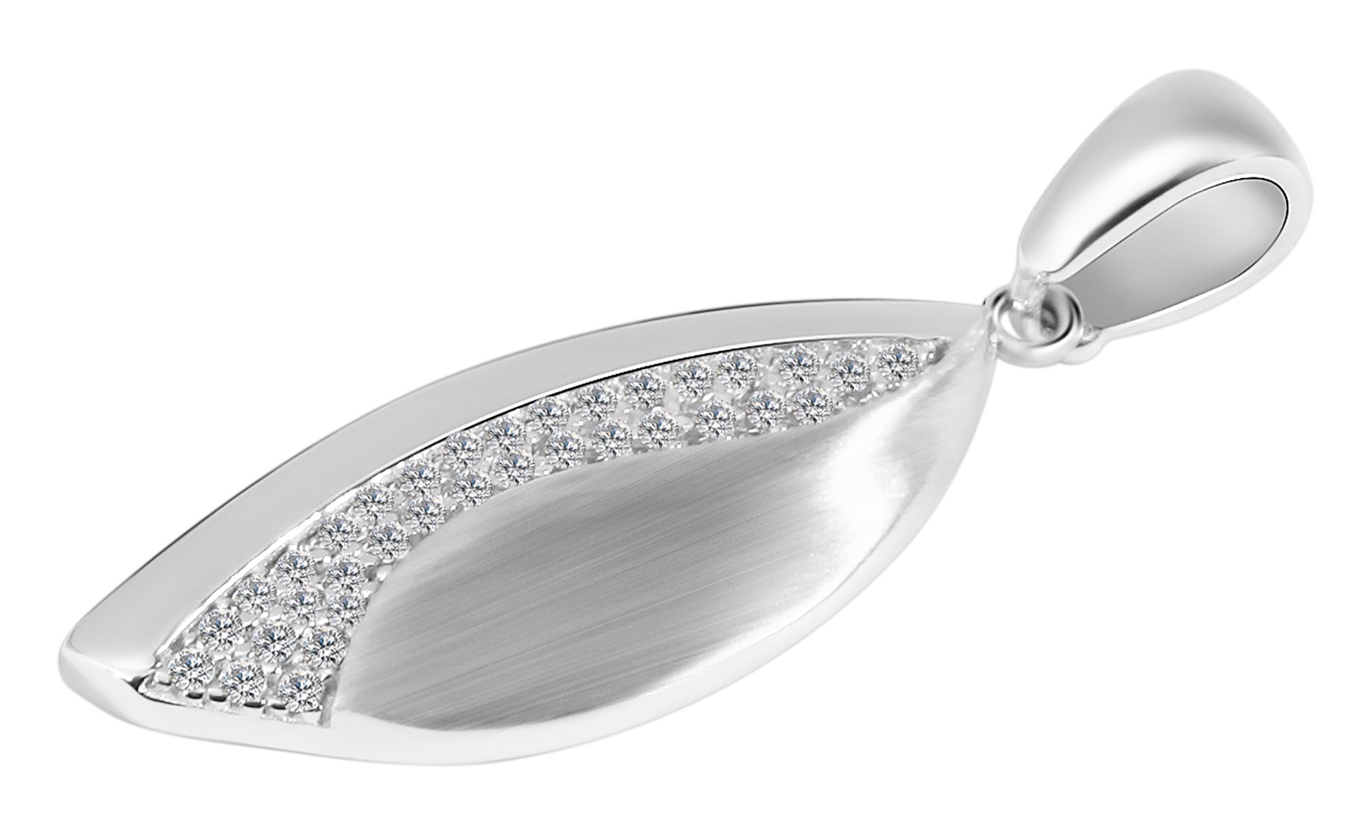 De hanger is gemaakt van 925 Sterling zilver en is ook gerhodineerd. De hoogwaardige rhodiumcoating voorkomt dat het sieraad aantast en benadrukt de zilveren tint. De hanger heeft een elegant ontwerp, een matte en gepolijste oppervlakteafwerking en is versierd met fonkelende zirkonia steentjes. Dankzij het oogje kan de hanger gecombineerd worden met verschillende kettingen om in een handomdraai een nieuwe look te creëren. Let op: er wordt geen halsketting meegeleverd. De hanger is 27 mm lang, 10,5 mm breed en 3 mm dik. Het elegante en tijdloze ontwerp van deze hanger betovert jong en oud en flatteert elk decolleté.