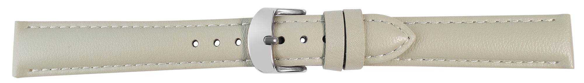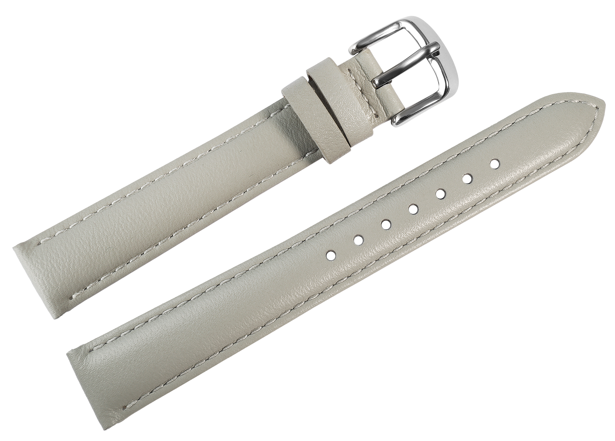 Deze horlogeband van hoogwaardig echt leer in de kleur grijs is verkrijgbaar in de lugbreedtes 12 mm, 14 mm, 16 mm, 18 mm, 20 mm, 22 mm en 24 mm en is daarmee geschikt voor verschillende horlogemodellen.