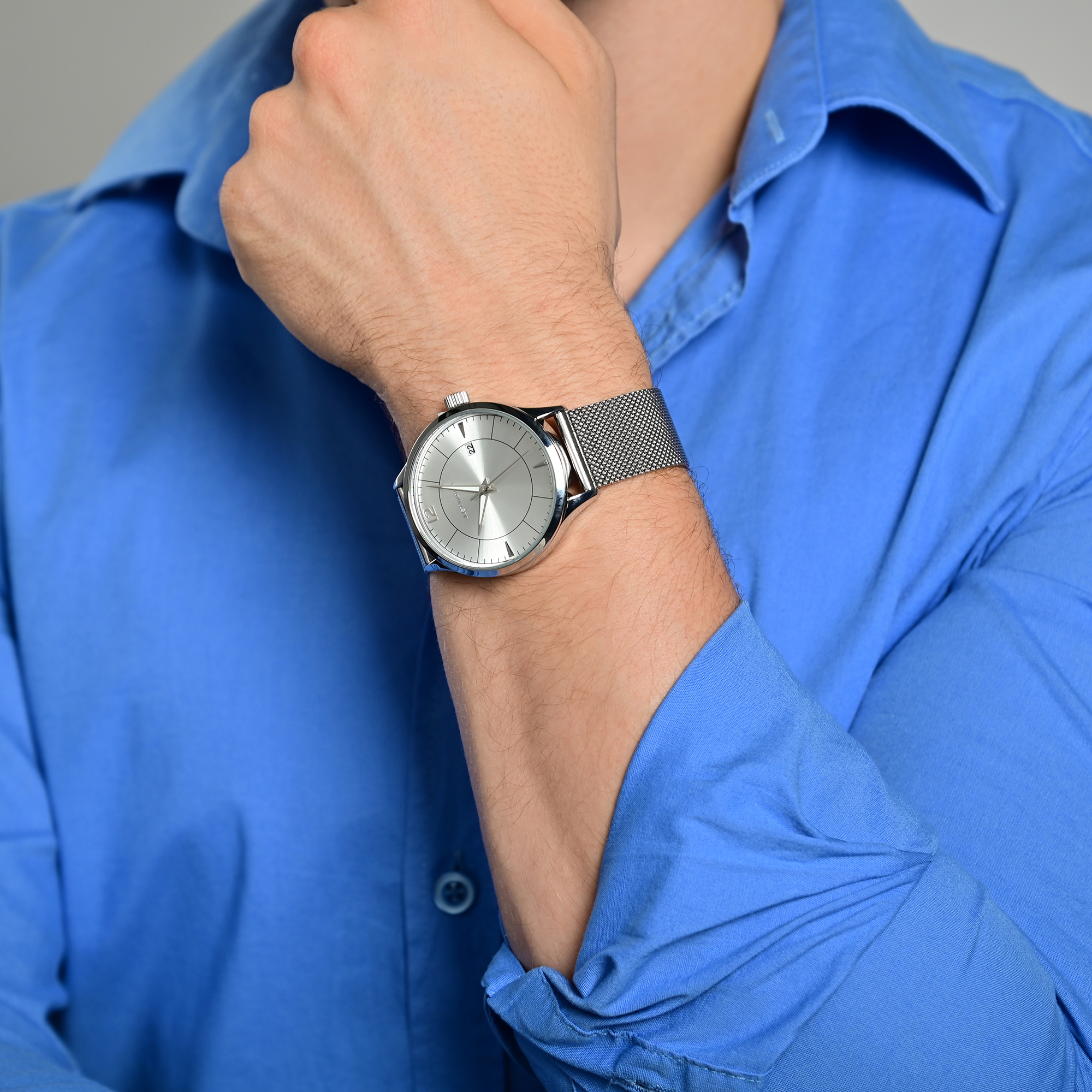 Het analoge herenpolshorloge met 3 wijzers van het merk Just Watch heeft een hoogwaardig kwartsuurwerk. De roestvrijstalen mesh armband is 20 mm breed bij de lug en kan worden geopend en gesloten met een haaksluiting. De totale lengte van het horloge is 23 cm. De metalen kast met mineraalglas heeft een diameter van 42 mm en een kasthoogte van 12 mm. Het horloge heeft ook een datumaanduiding op drie uur. De achterkant van de kast is gemaakt van roestvrij staal en het herenhorloge is ook waterbestendig tot 3 bar. De wijzers zijn voorzien van Superluminova, waardoor je de tijd zelfs in het donker gemakkelijk kunt aflezen. Je ontvangt een garantiekaart en een originele Just Watch doos als accessoires voor je product.