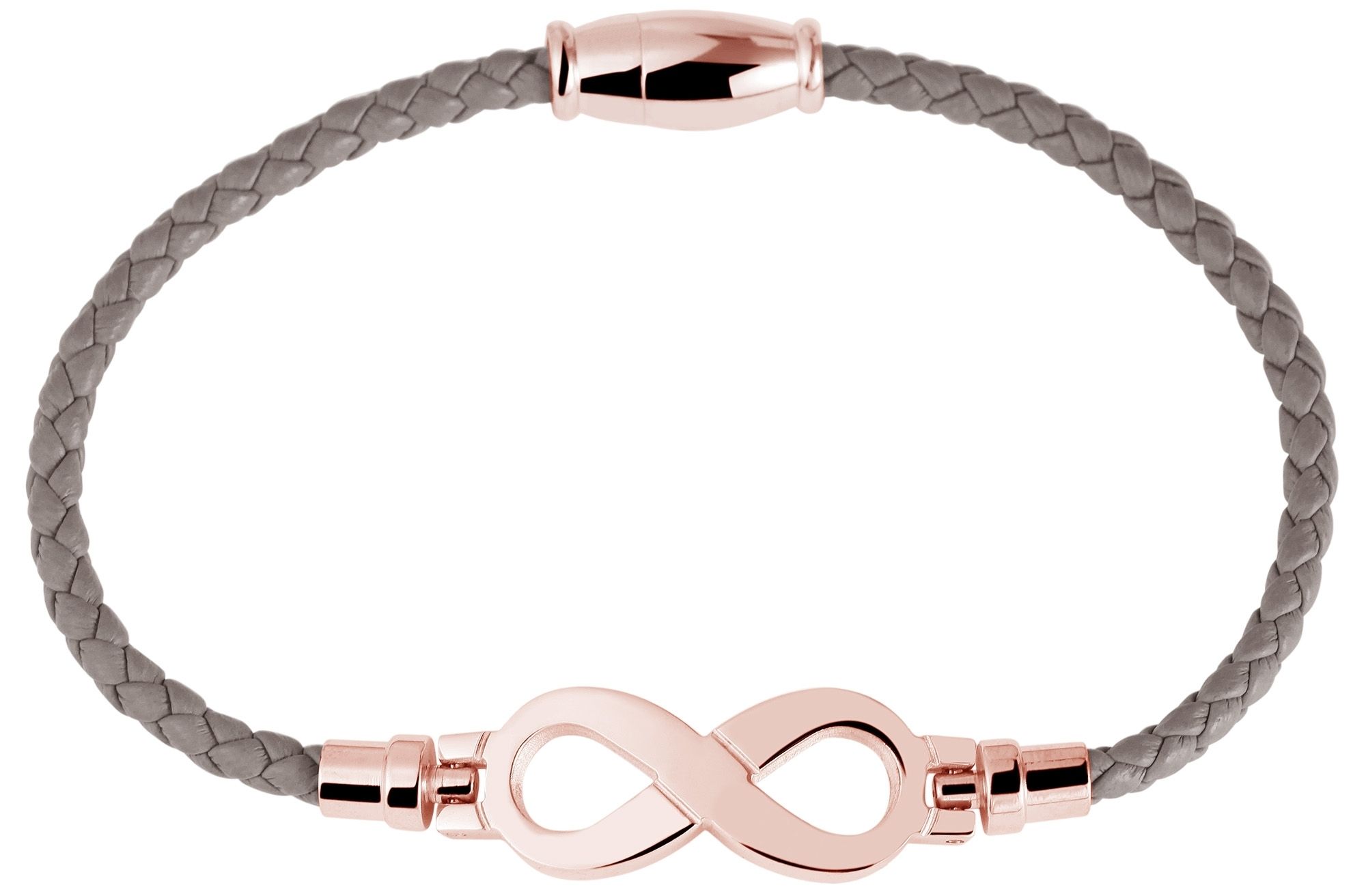 Productinformatie "Akzent Armband aus Lederimitat mit Unendlichkeitszeichen aus Edelstahl, taupe/roségoldfarben"