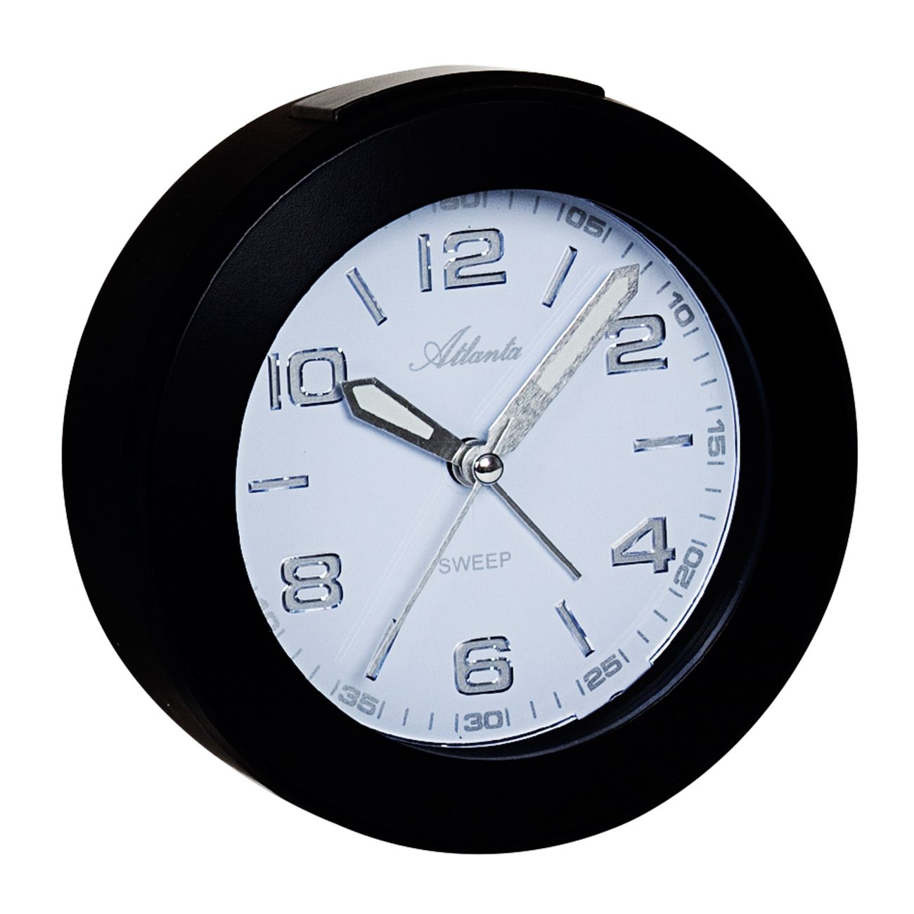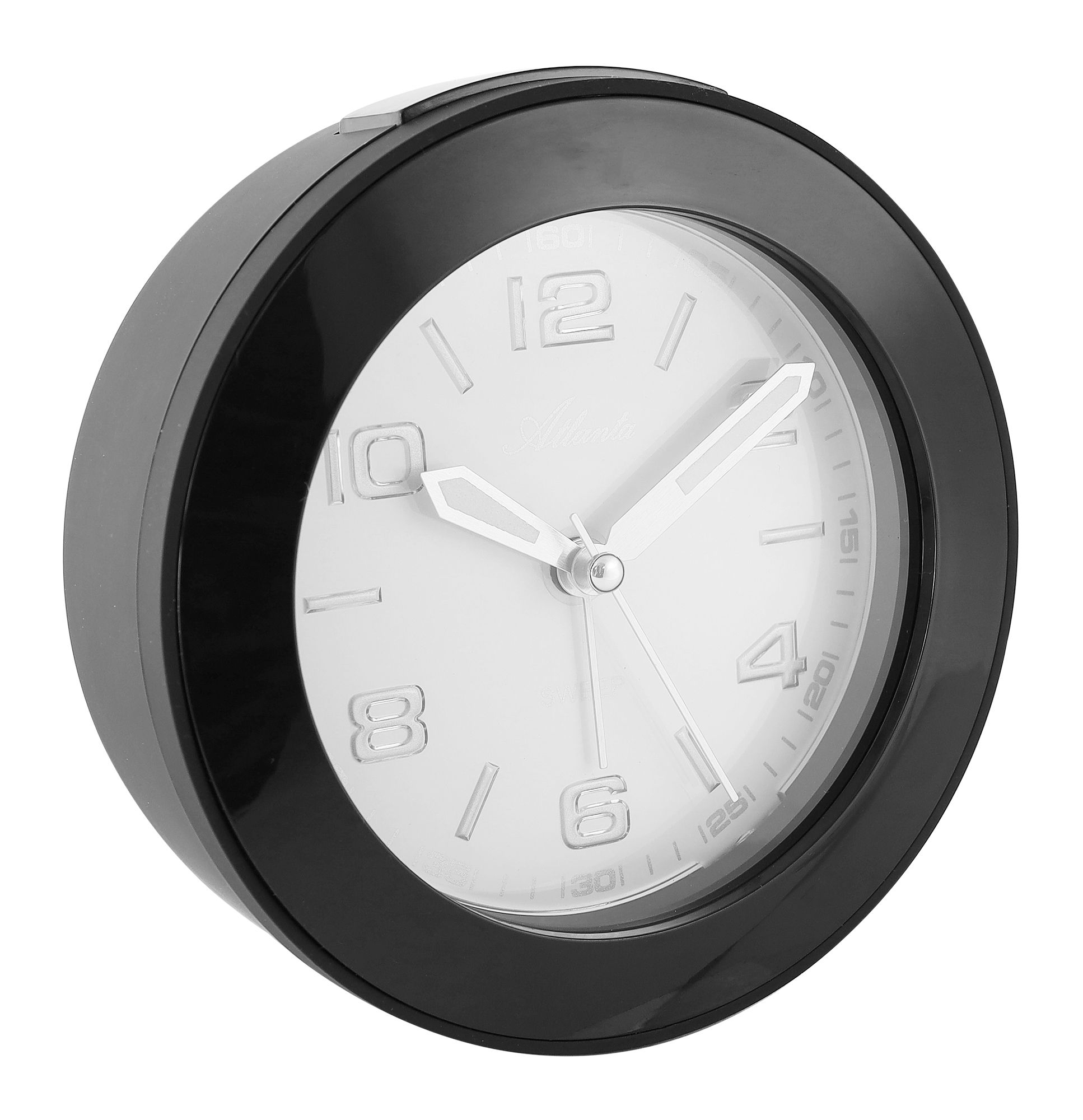 Productinformatie "Atlanta Quartzwecker, schleichende Sekunde, Weckwiederholung, Licht, ansteigendes Wecksignal, schwarz ø 12 cm"