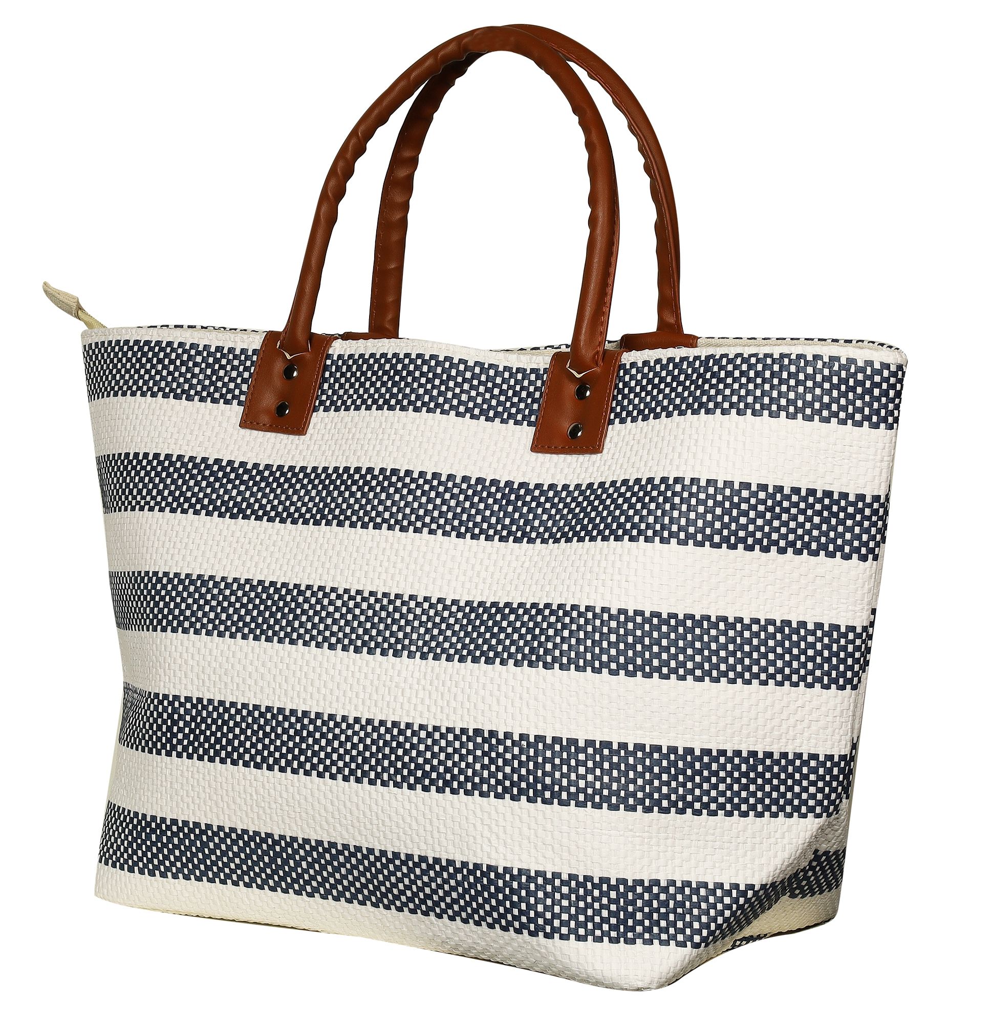 Productinformatie "Damestas/strandtas van stro, gestreept ontwerp"