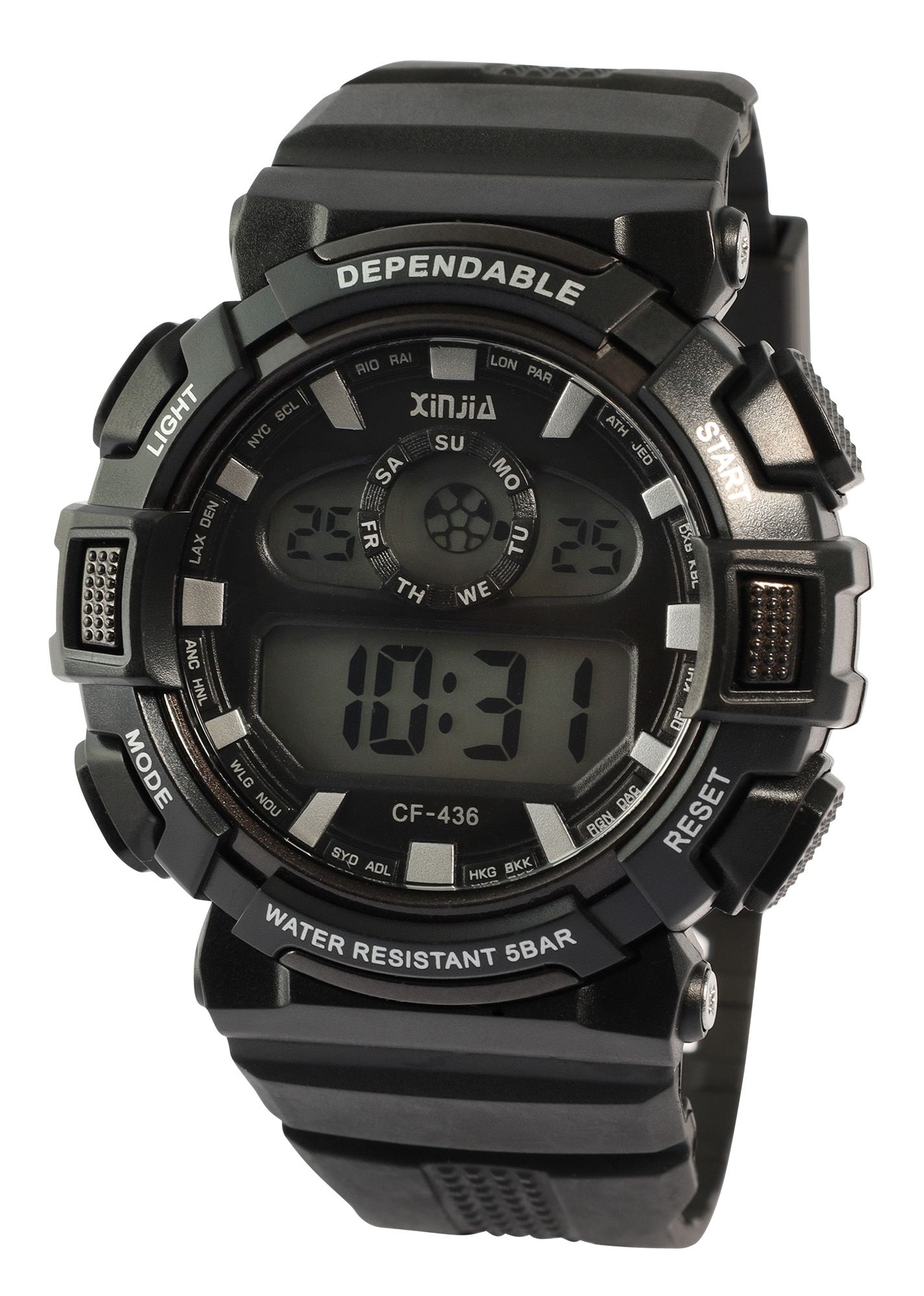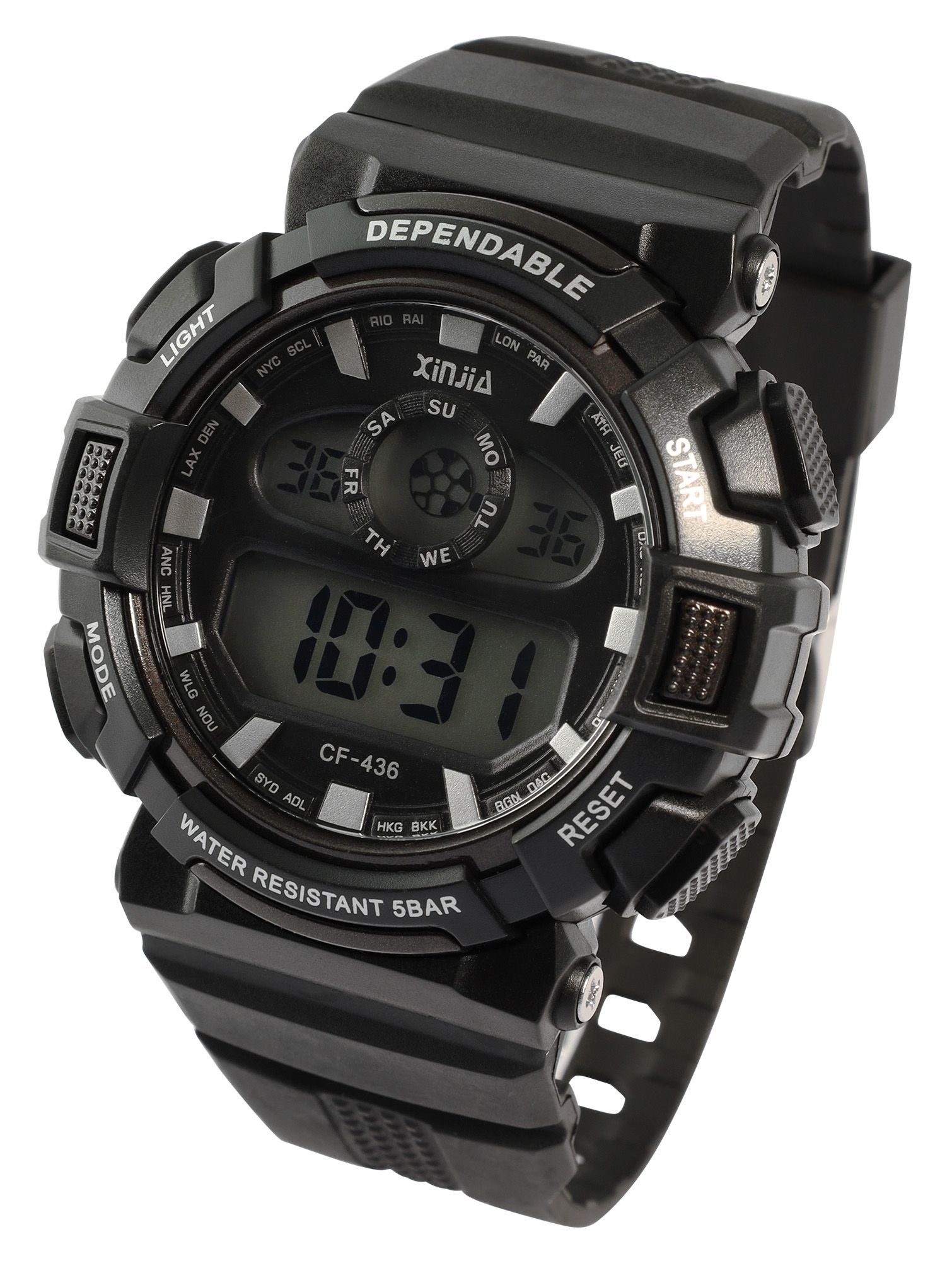 Het digitale horloge van Xinjia combineert een digitaal horloge met een TPU band en vele handige functies.