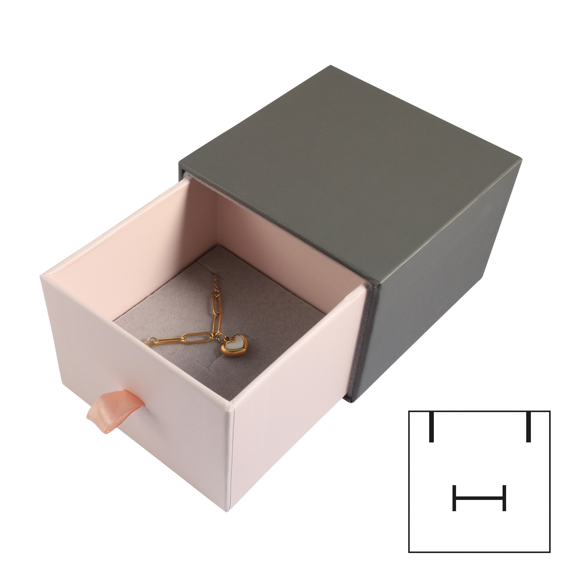 Bied je klanten een liefdevol ontworpen opbergoplossing met onze sieradendoosjes in een harmonieuze kleurencombinatie. In een verpakkingseenheid van 6 stuks bieden we deze doosjes aan in drie formaten: 7 x 7 x 4,5 cm, 9 x 9 x 3,5 cm en 9 x 9 x 6,5 cm. Wat deze doosjes speciaal maakt is de uittrekbare lade, die een praktische en stijlvolle manier biedt om sieraden in op te bergen. Of het nu ringen, oorbellen of andere kleine schatten zijn - deze lade zorgt voor een duidelijke en opgeruimde opslag. Het stevige karton zorgt niet alleen voor duurzaamheid, maar beschermt ook waardevolle sieraden. Het deksel sluit goed en de doosjes zijn gemakkelijk te hanteren.