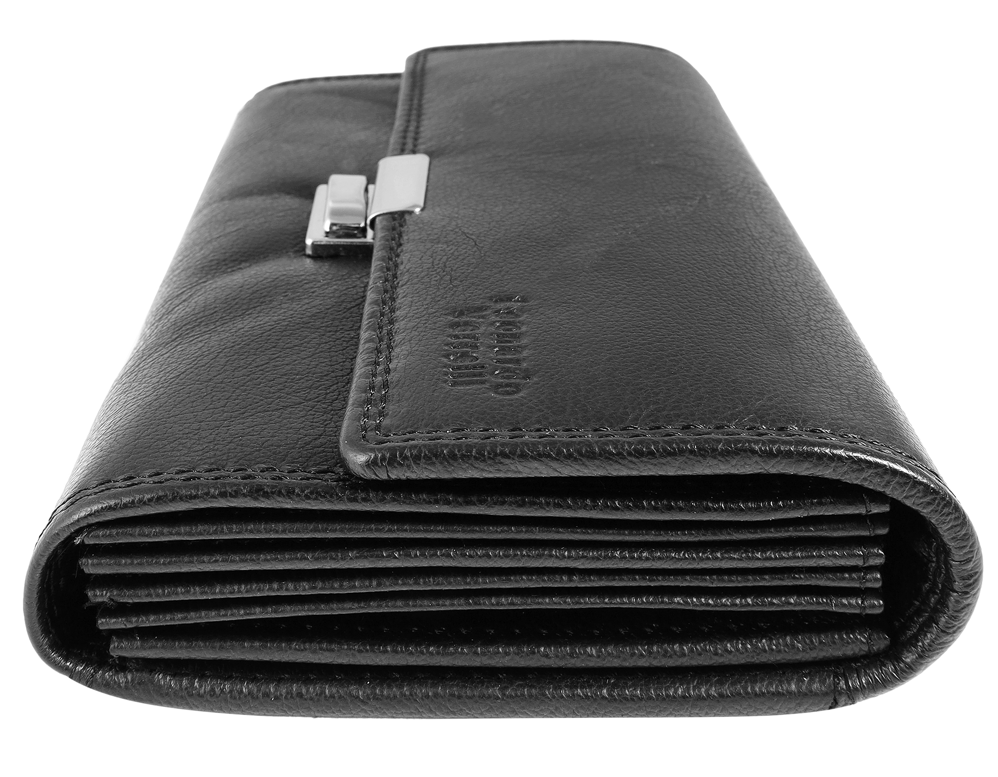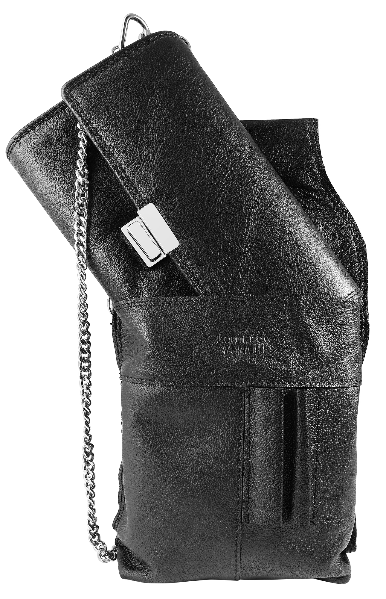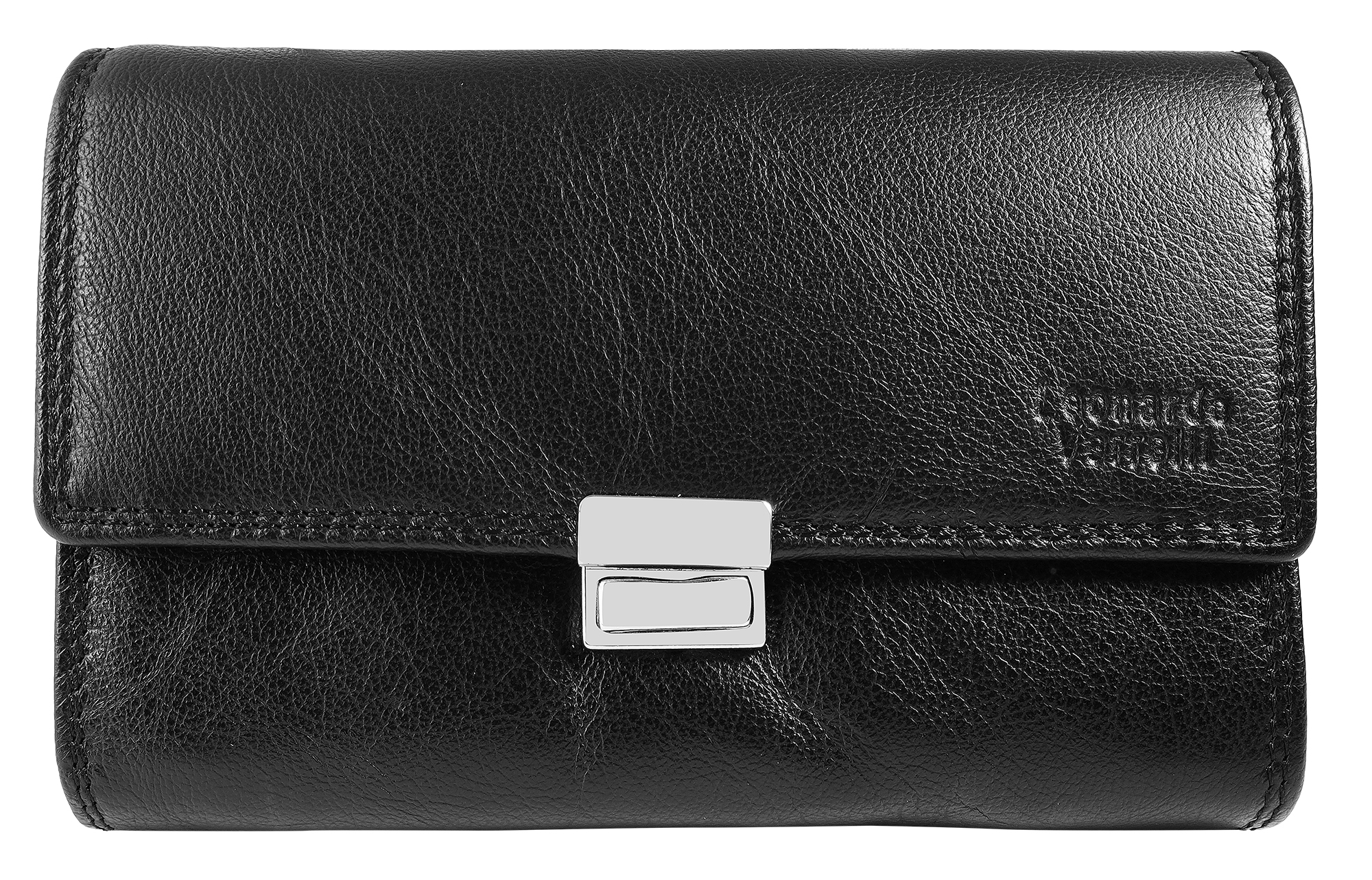 Productinformatie "Leonardo Verrelli, Echtleder Kellner-Geldbörse, mit Tasche u. Kette, Tuck Lock Verschluss, schwarz"