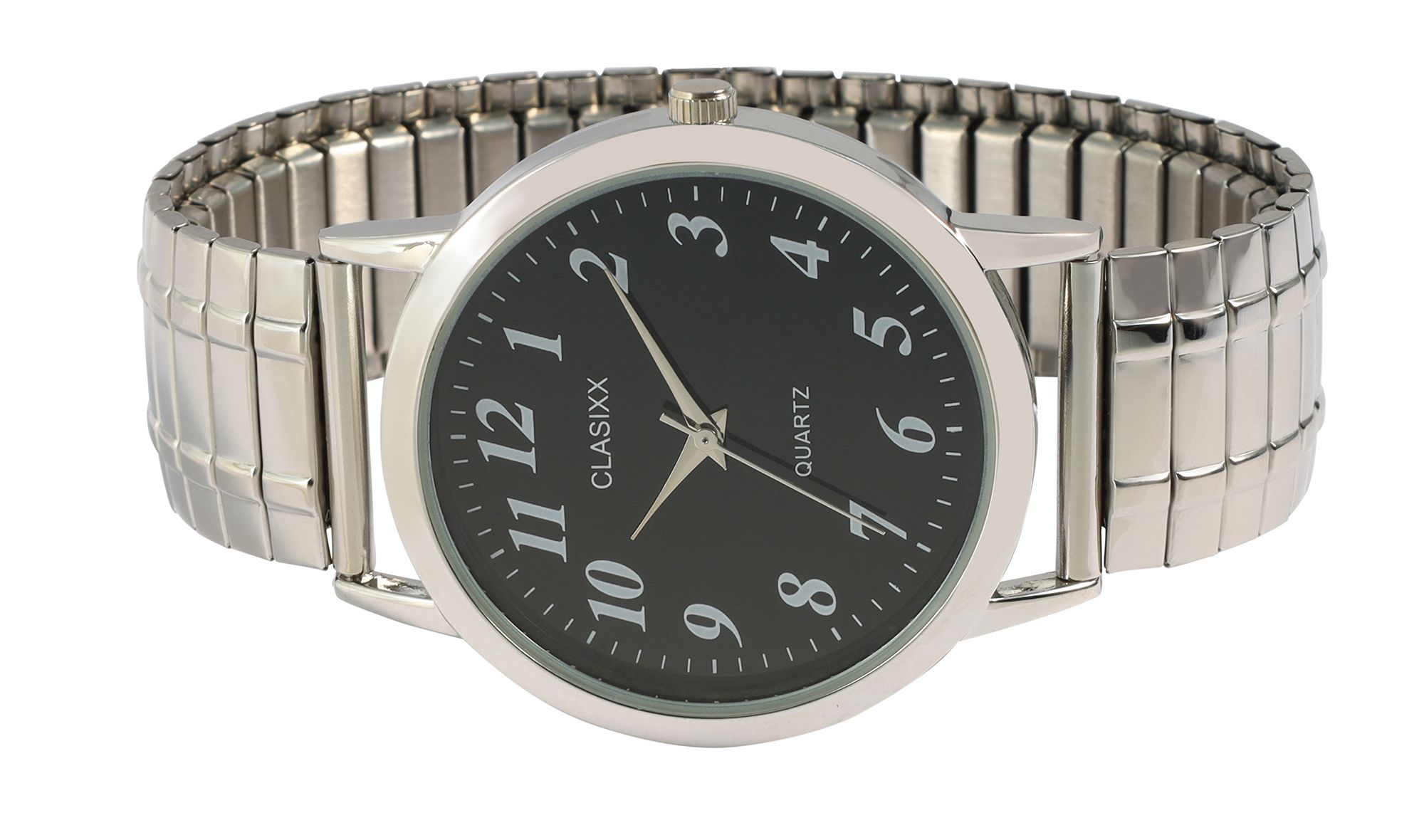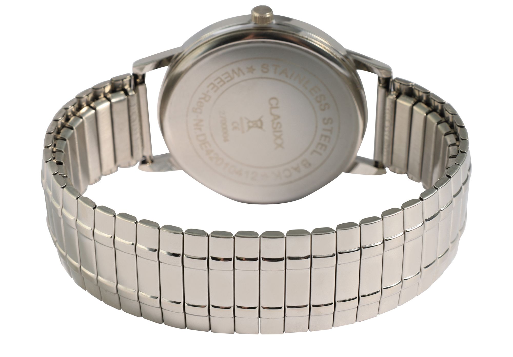 Productinformatie "Clasixx Herrenuhr mit Edelstahlzugarmband, silberfarben/schwarz"