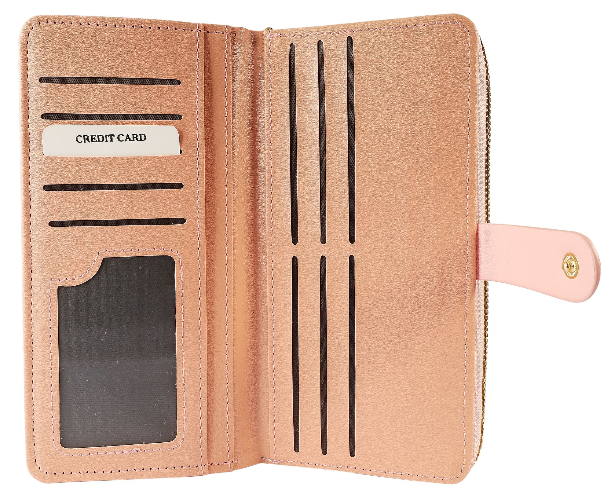 - De ingenieuze flap met drukknoop beschermt een ander vak met 10 creditcardvakjes, een transparant ID-vak en drie insteekvakken.