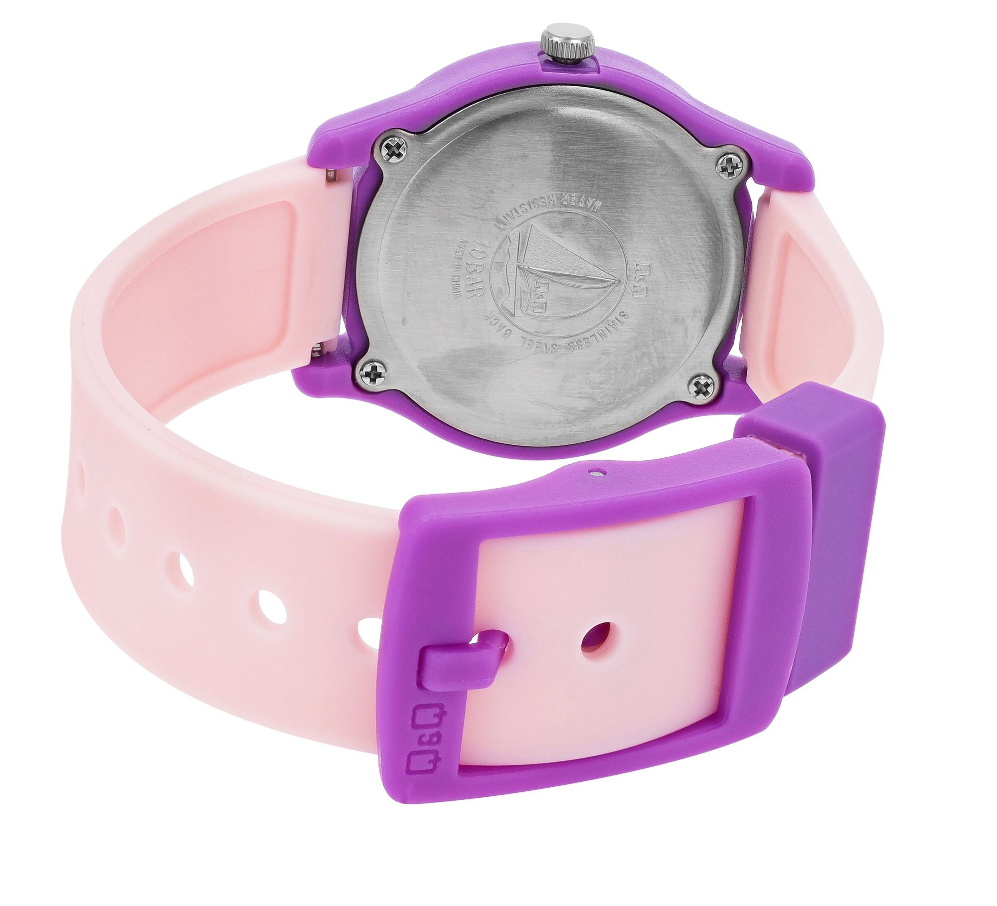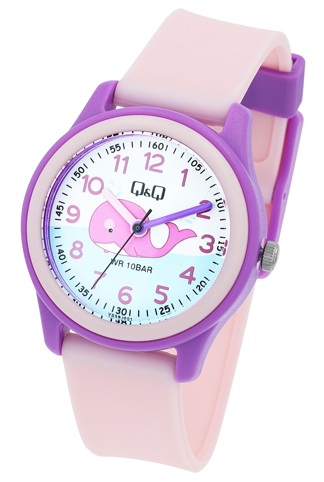 Productinformatie "Q&Q Kinderuhr mit Silikonarmband, "Wal", 10 Bar, rosa"