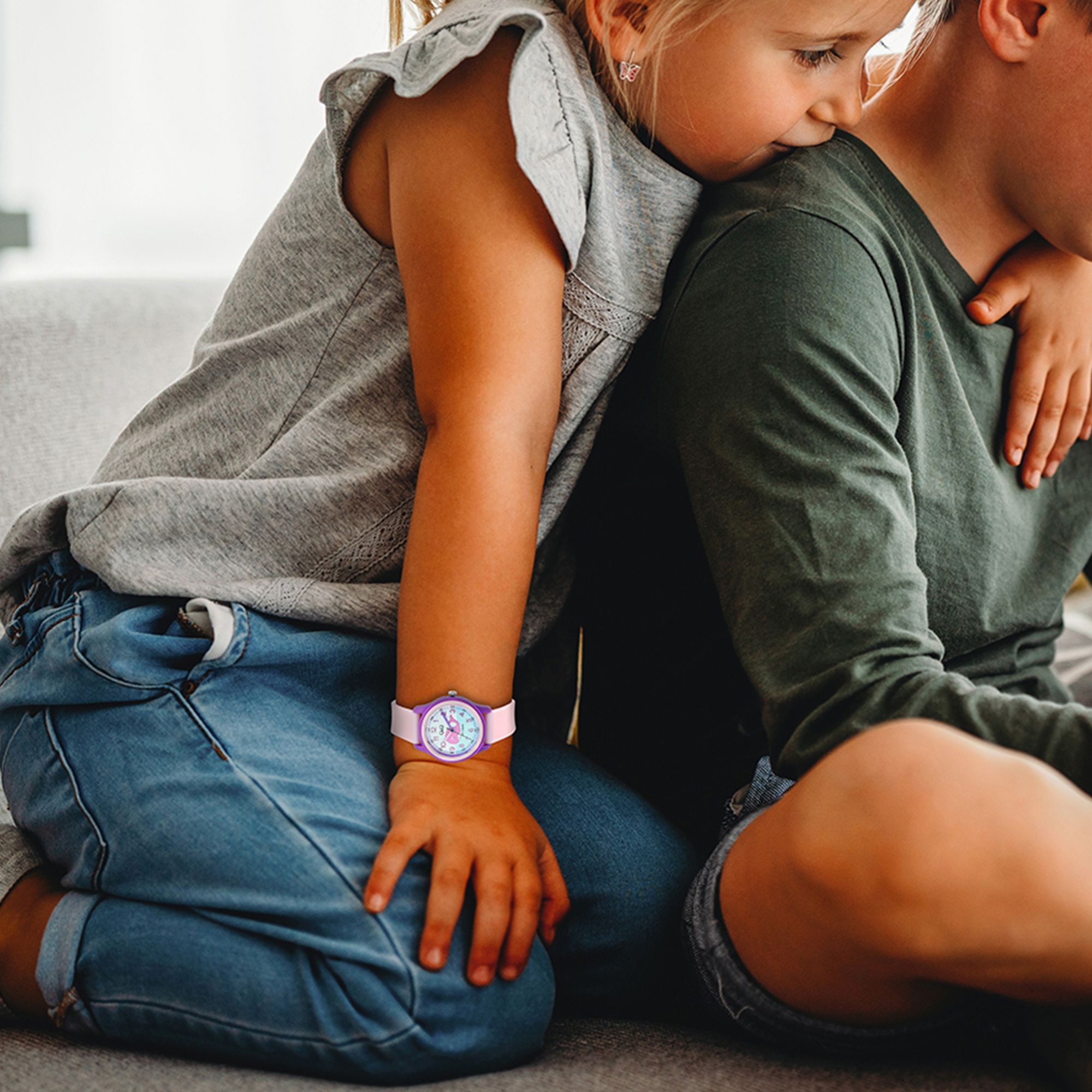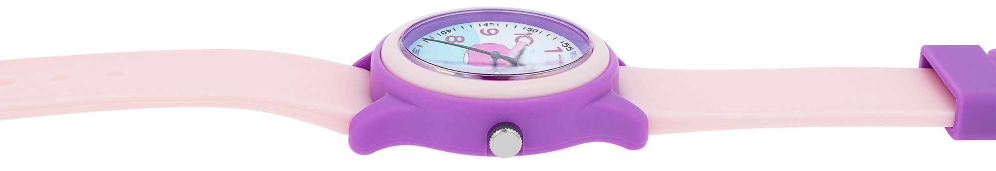 Dit meisjesachtige kinderhorloge met een siliconen band en een walvis op de wijzerplaat is voorzien van een nauwkeurig quartz-uurwerk van hoge kwaliteit dat niet alleen voor nauwkeurigheid zorgt, maar ook langdurige betrouwbaarheid garandeert. De indrukwekkende waterbestendigheid van 10 ATM maakt dit horloge perfect voor avontuurlijke kinderen die graag spetteren en spelen. De roze siliconen band zorgt niet alleen voor een comfortabele pasvorm, maar ook voor een speels tintje dat kleine hartjes sneller doet kloppen. De paarse gesp voegt een vleugje speelse elegantie toe en zorgt voor een stevige pasvorm. De paarse kunststof kast, gecombineerd met een roze bezel, voegt een modieus accent toe en maakt van dit meisjeshorloge een echt sieraad. De wijzerplaat is versierd met een walvis, die de verbeelding van kleine draagsters zal prikkelen. Met een kastdiameter van 32 mm, een kasthoogte van 10 mm en een bandbreedte van 16 mm is het speciaal ontworpen voor delicate polsen. De totale lengte van 22,5 cm zorgt ervoor dat het horloge comfortabel gedragen kan worden.