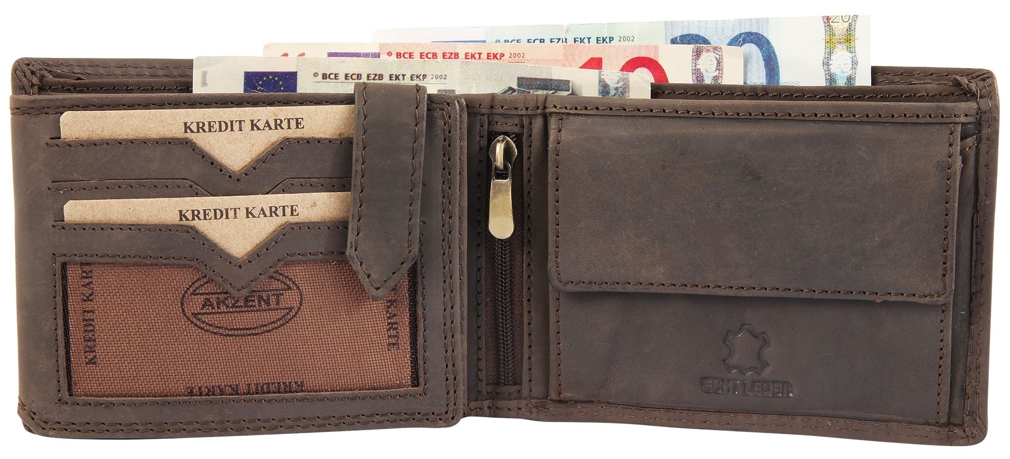 Productinformatie "Akzent Herren Geldbörse aus Echtleder in braun. Format 13 x 10 cm."