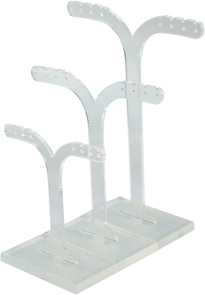 Presenteer je oorbellen op een stijlvolle en georganiseerde manier met onze elegante oorbellenstandaard in transparant. Deze praktische set van 3 biedt een aantrekkelijke manier om je sieraden uit te stallen. Dankzij hun compacte afmetingen passen ze perfect op elke toonbank of in elke vitrinekast zonder veel ruimte in te nemen.