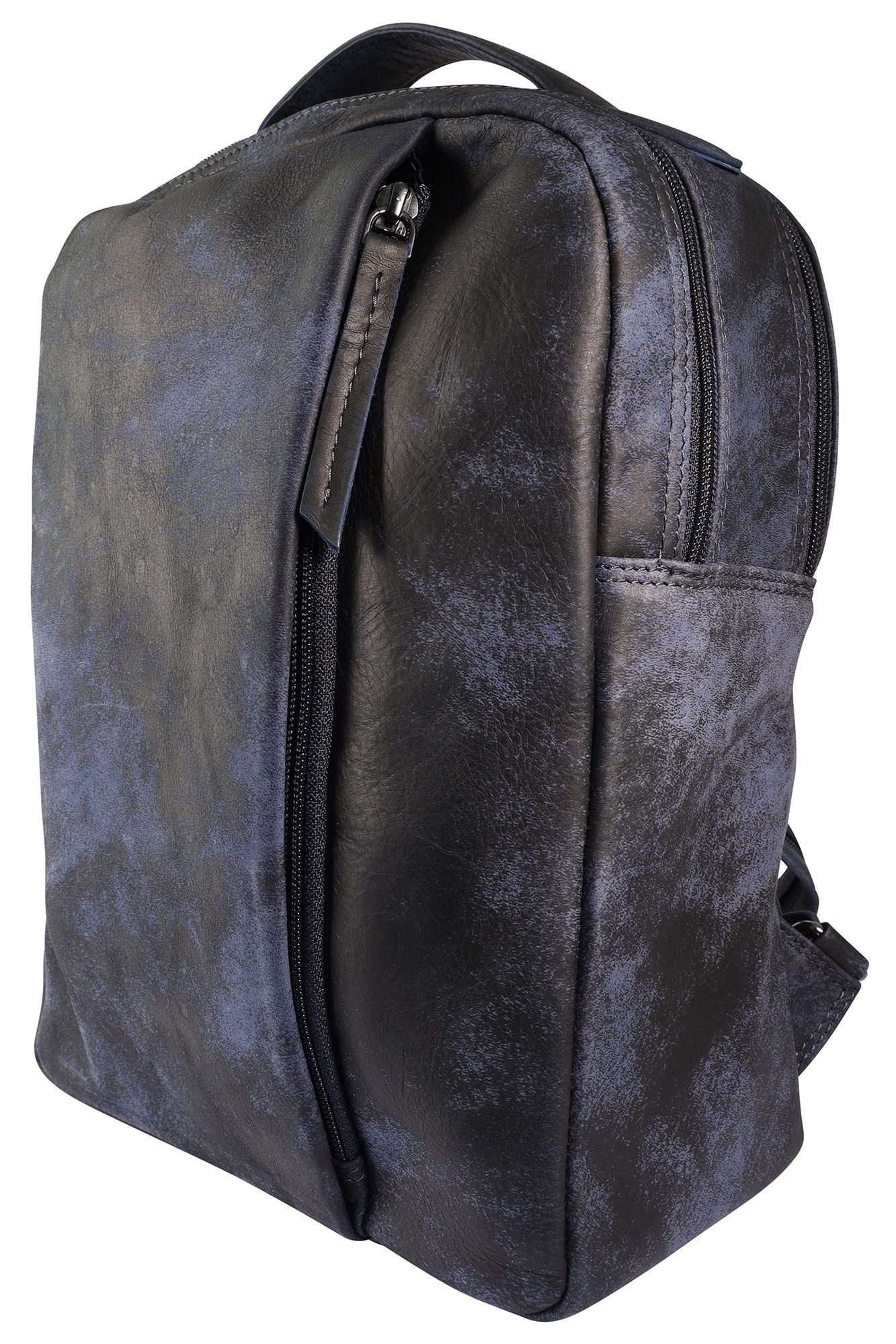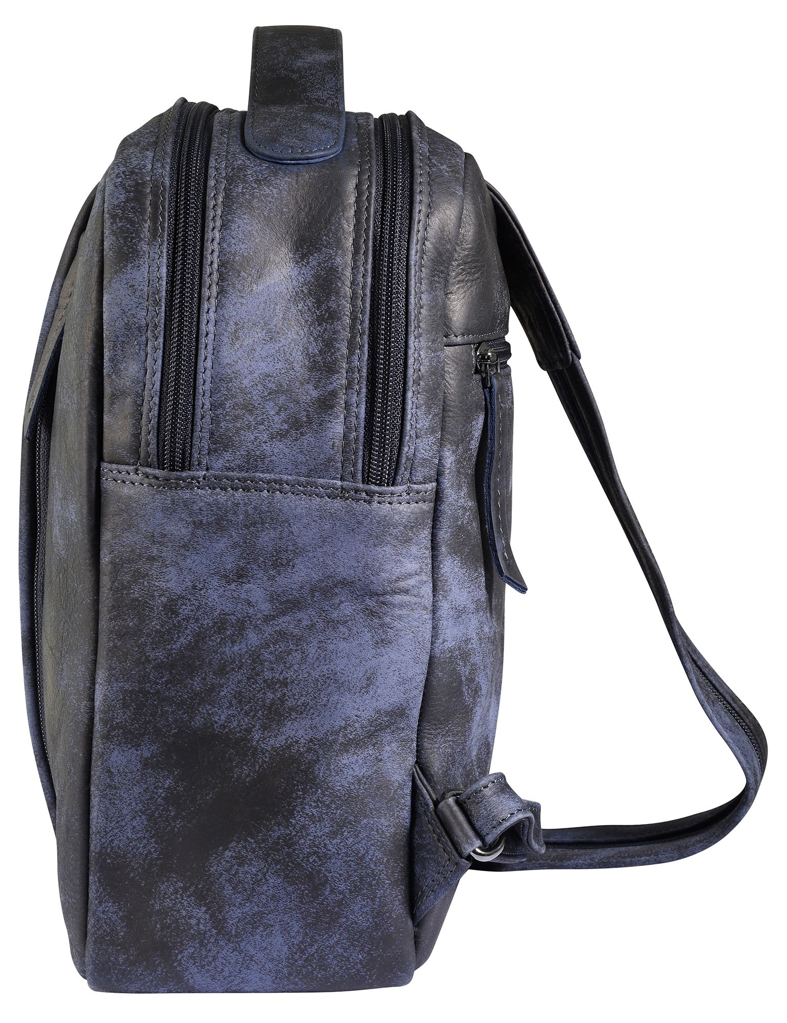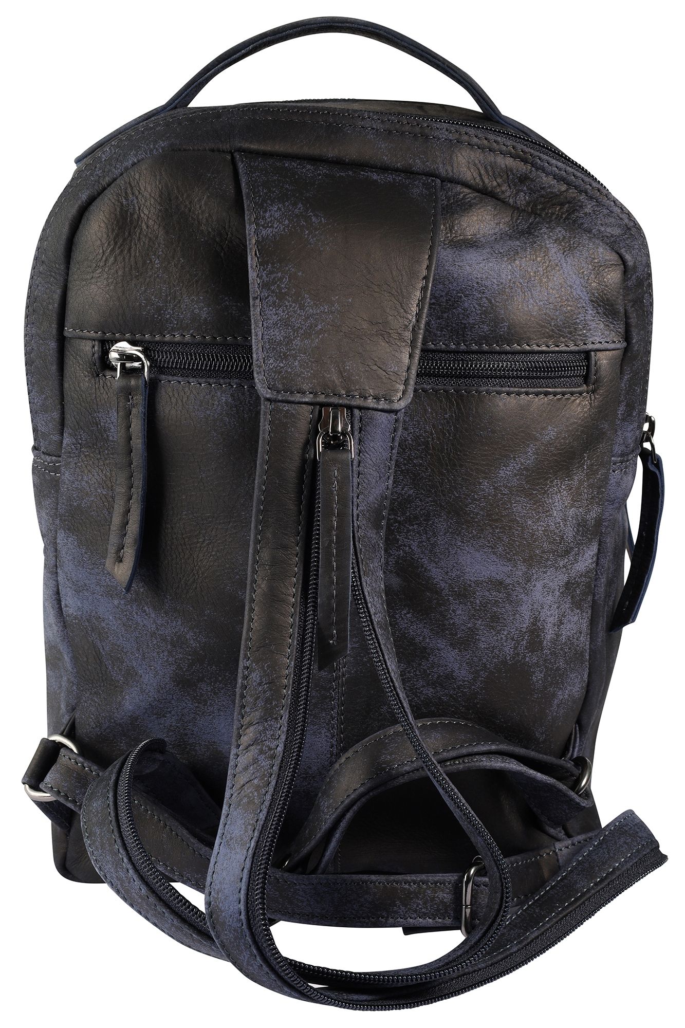 Productinformatie "Leonardo Verrelli, echt lederen rugzak/slingertas, ritssluiting, verstelbare riemen, blauw/zwart"