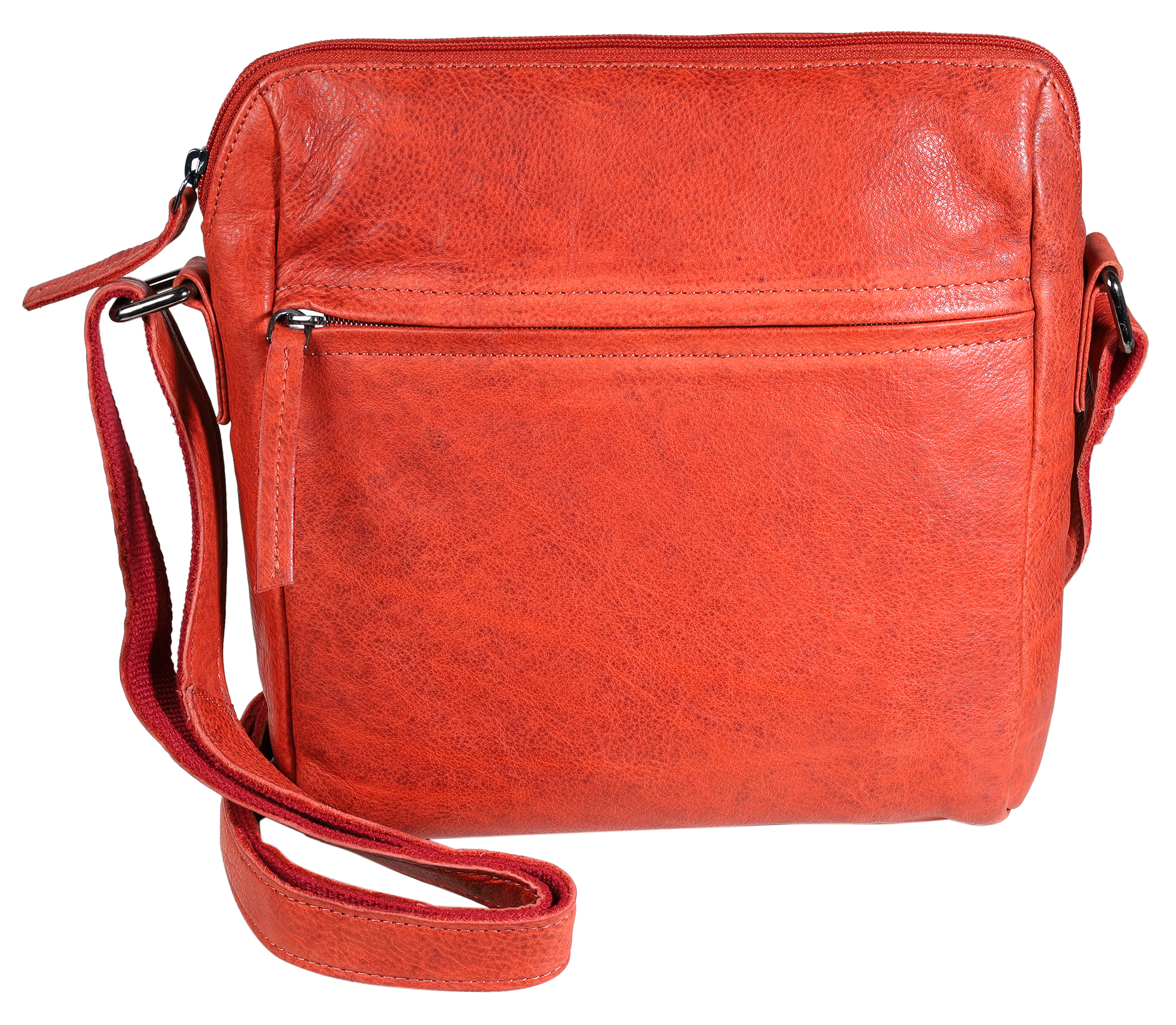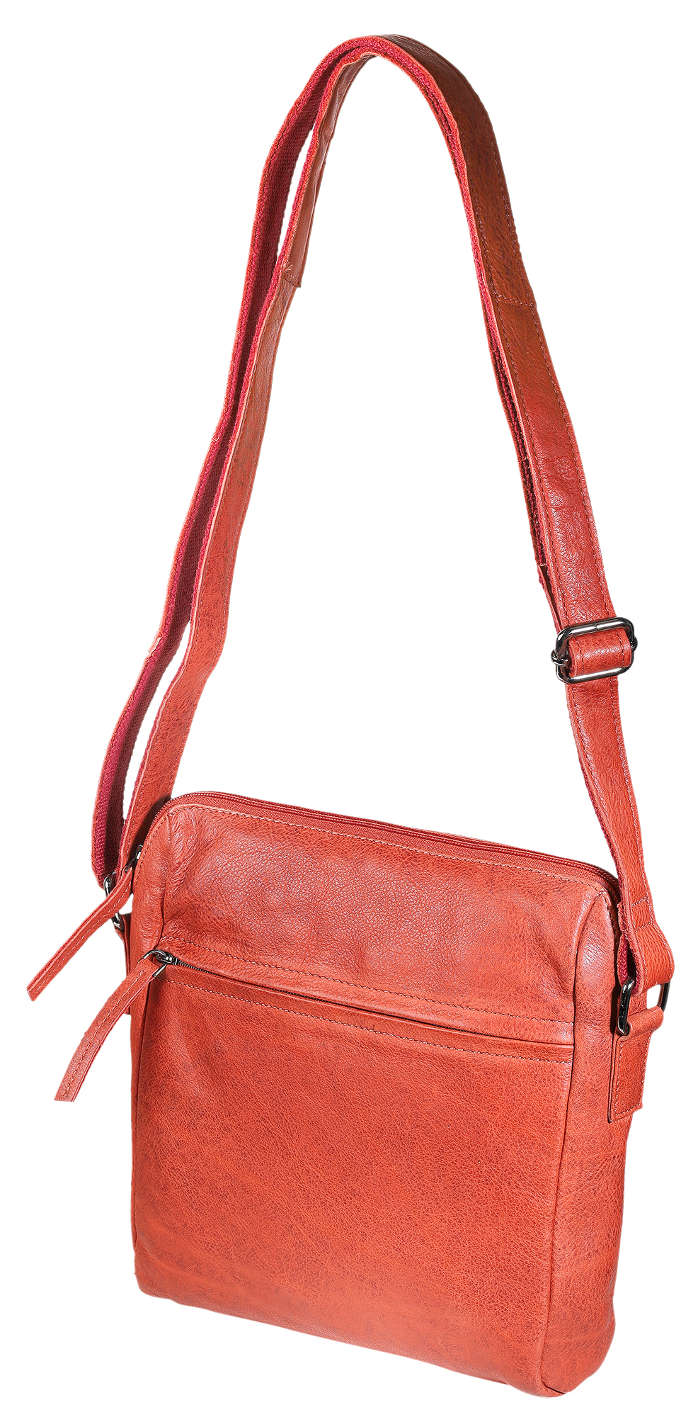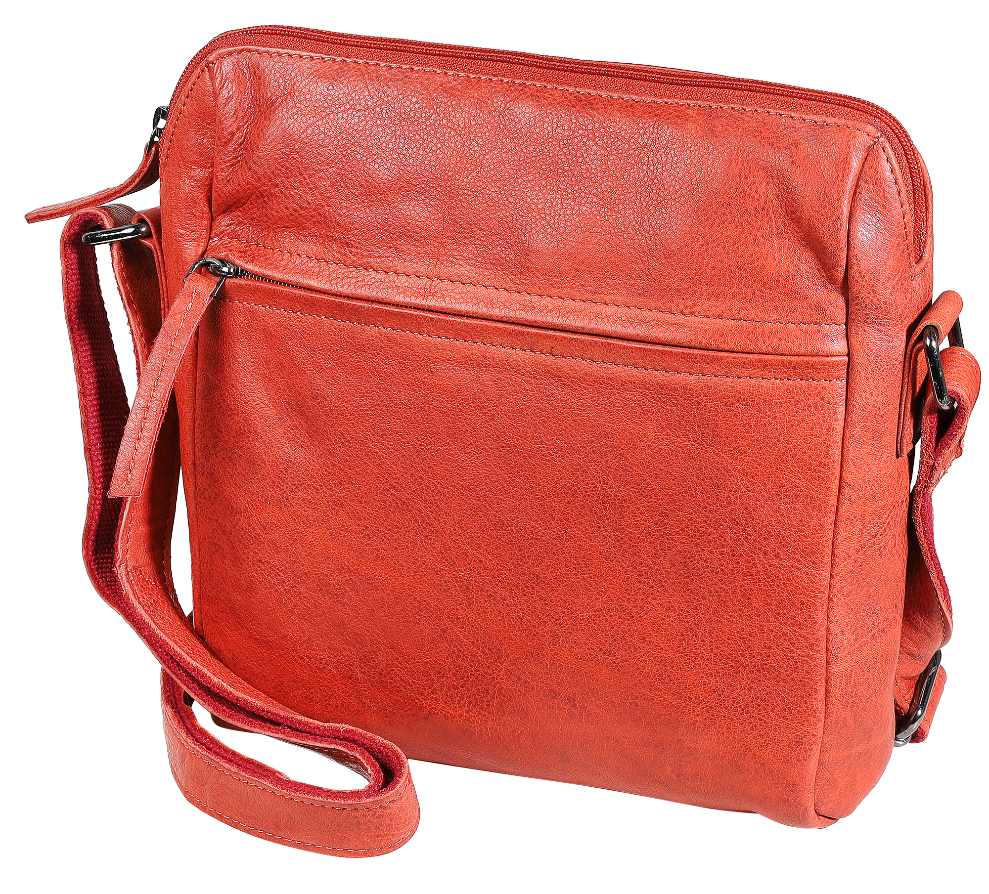 Productinformatie "Leonardo Verrelli, echt lederen schoudertas, gewassen, verstelbare riem, ritssluiting, rood"
