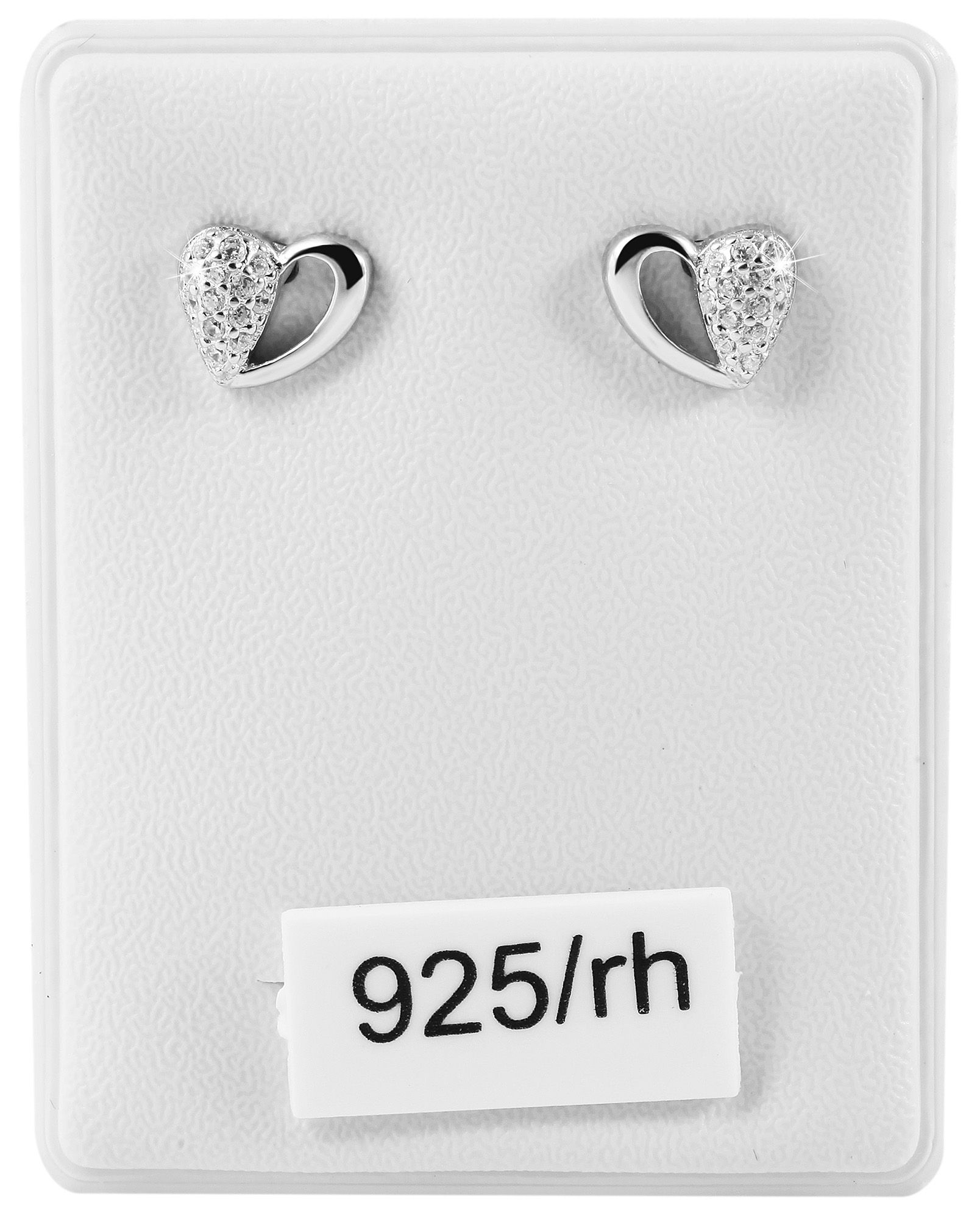 Productinformatie ""Sonya", 925/- Echtsilber Ohrstecker, Herz, Zirkoniabesatz, rhodiniert"