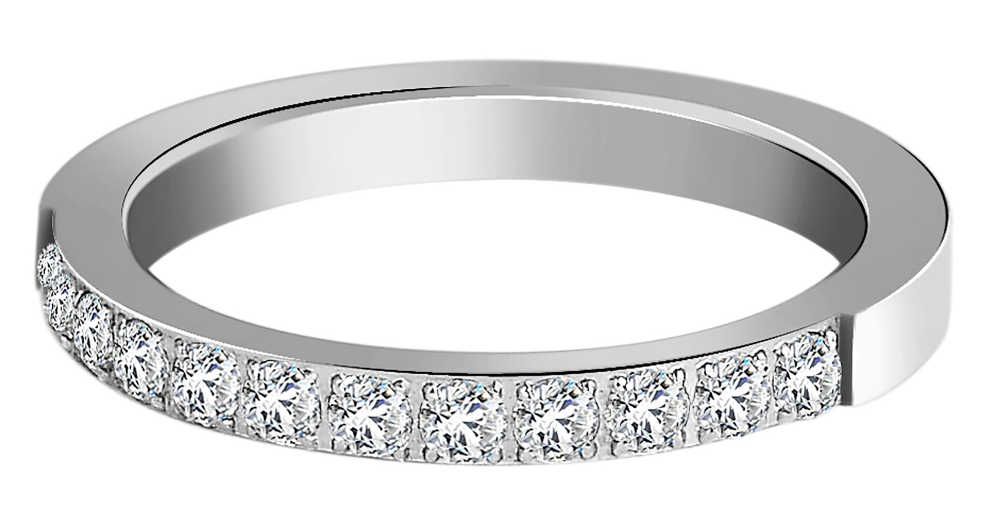 Met zijn delicate breedte van slechts 2,5 mm en de fonkelende steenzetting is het de perfecte keuze als verlovingsring. Twaalf zorgvuldig gezette similisteenjes fonkelen bij elke beweging en laten de ogen van je geliefde schitteren.