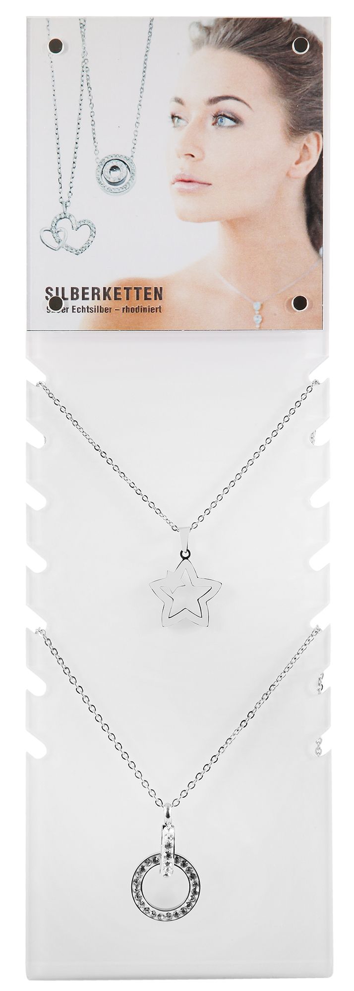 Productinformatie "Aufsteller für Ketten, weiß, mit Bild, 25 cm x 10 cm x 8 cm"
