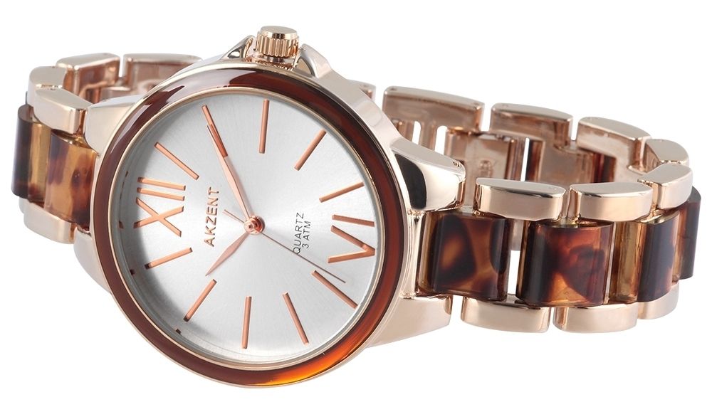 Het Akzent analoge dameshorloge heeft een hoogwaardig quartz uurwerk. De metalen armband is 18 mm breed en opent met een clipsluiting. De totale lengte is 18 cm. De metalen kast met mineraalglas meet 40 mm en is 10 mm hoog. De kastdeksel is gemaakt van roestvrij staal. Het horloge is getest op een druk van 3 ATM.