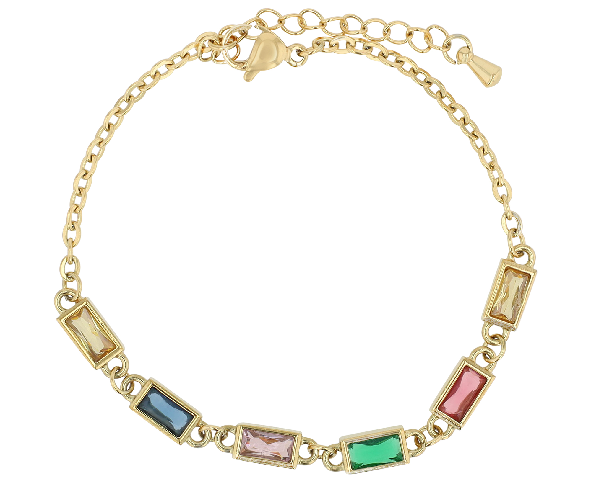 Productinformatie ""Amelia" Edelstahl Armband mit bunten Steinen, 16 + 3 cm"