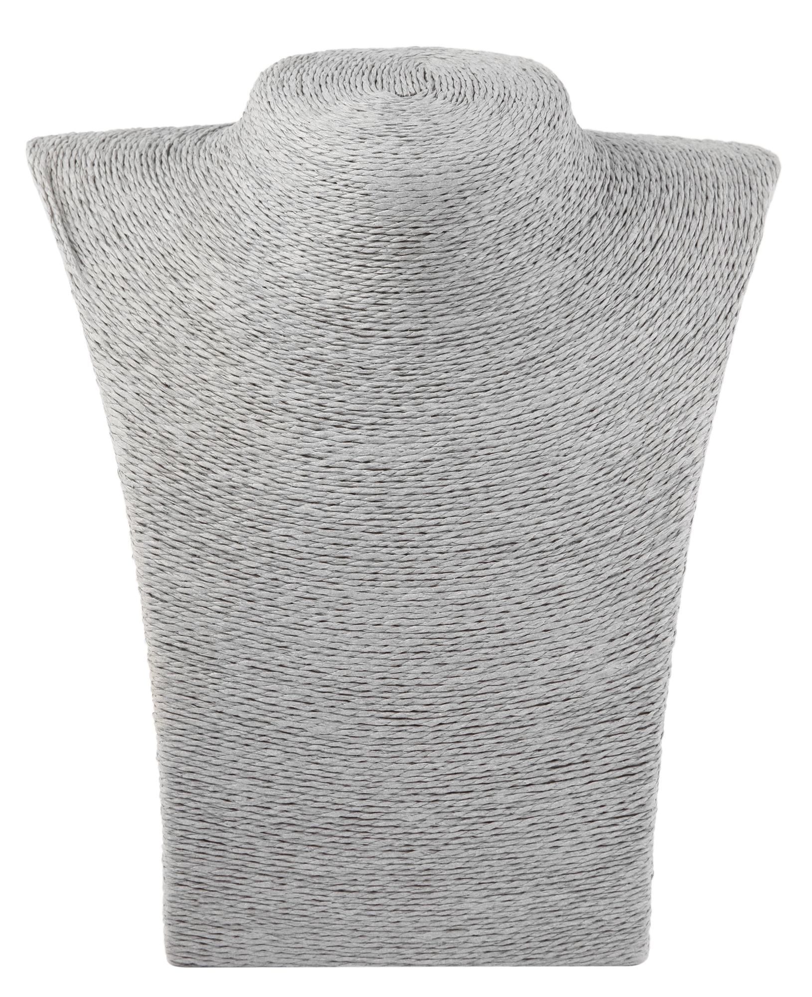 De sieradenhouder in een eenvoudige bustevorm is gemaakt van bastvezel, deze vezels zorgen voor een hoogwaardige en decoratieve uitstraling. De buste is grijs en is ideaal voor het tentoonstellen van sieraden. Op de toonbank, in de etalage of in de showroom, de buste slaat overal een goed figuur. De afmetingen van de displaystandaard zijn 23 cm lang, 19,5 cm breed en 5,5 cm dik.