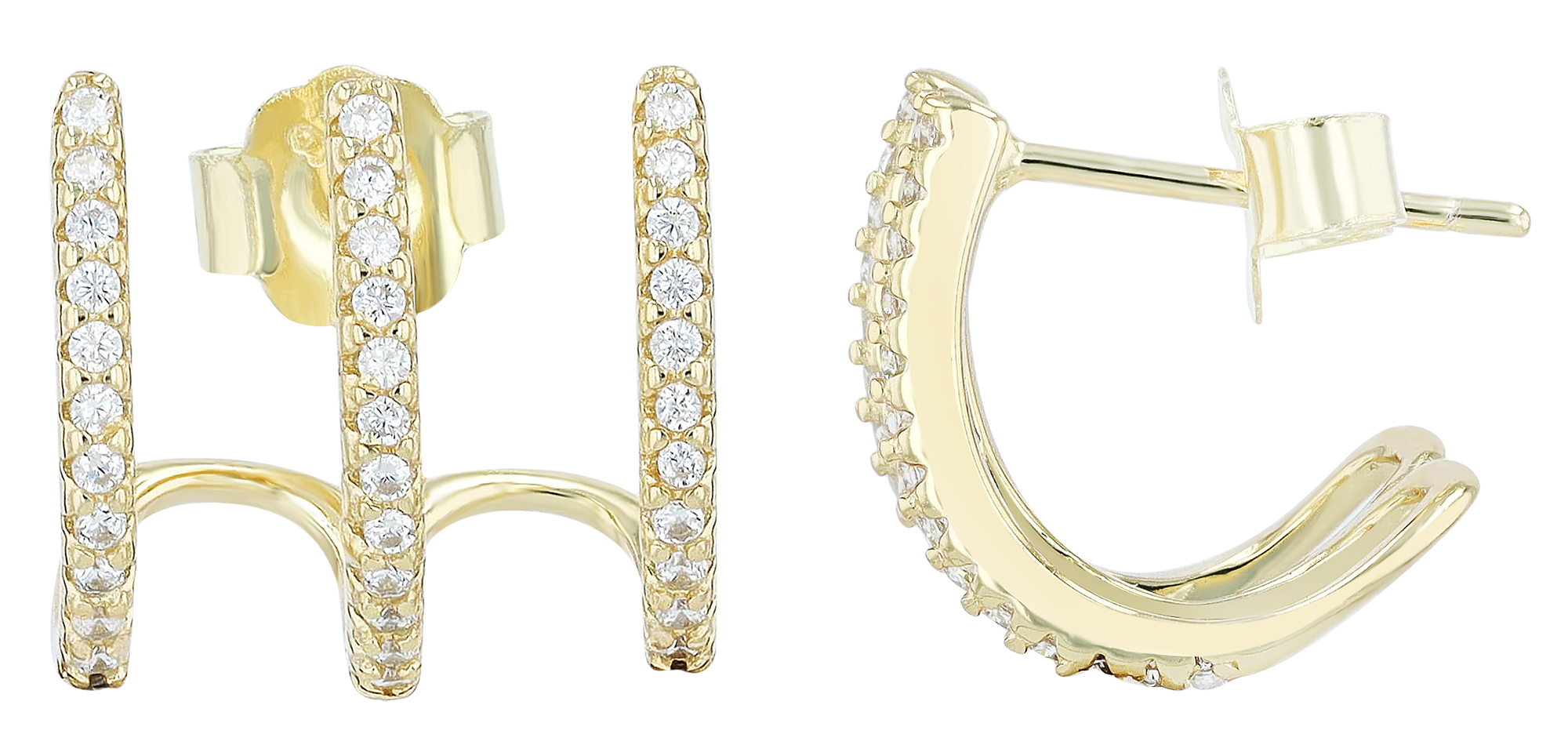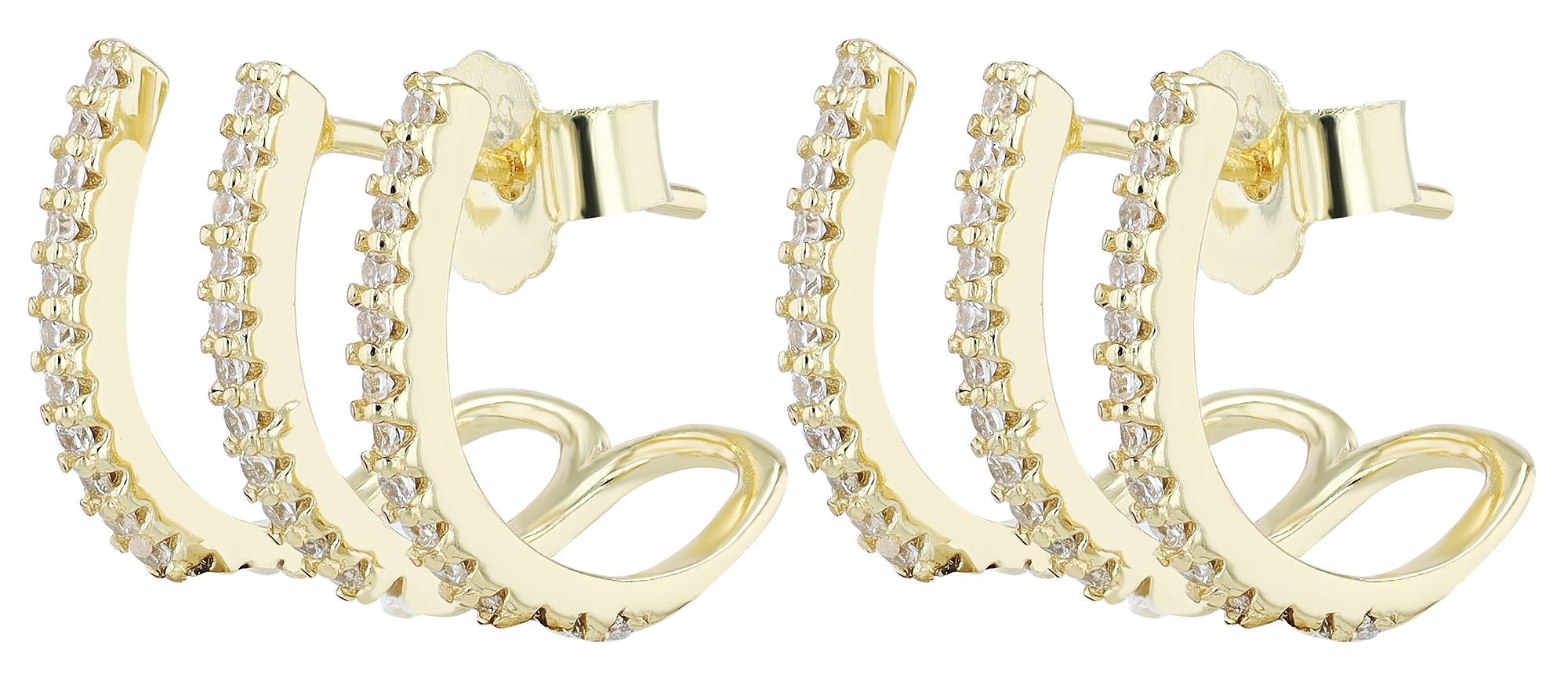 Productinformatie ""Eli" 925/- Echt Silber Dreifach Halbcreole mit Stecker, Zirkonia, vergoldet"
