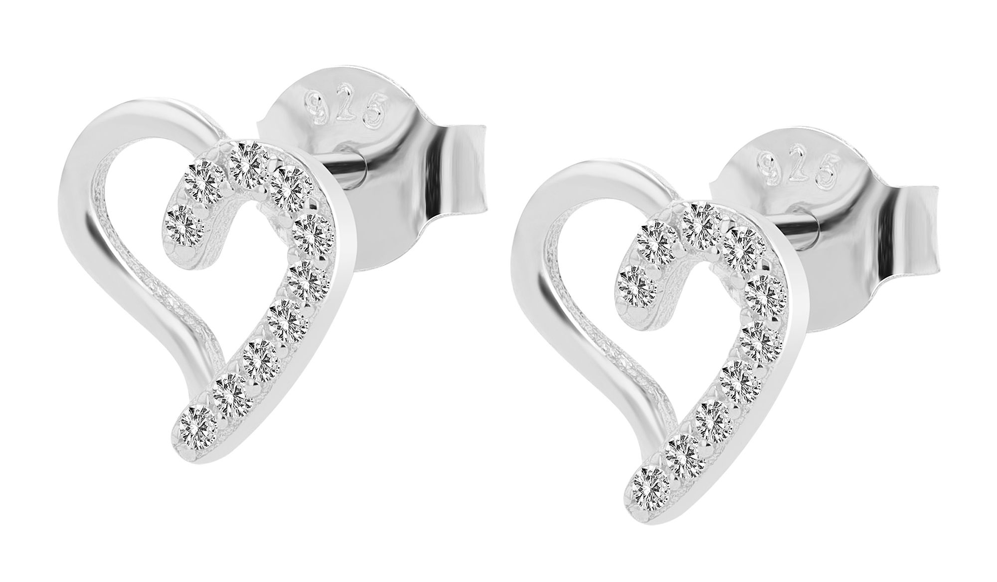 Productinformatie ""Eirlys" 925/- Echt Silber Ohrstecker, Herz mit Zirkoniabesatz, silberfarben/ rhodiniert"