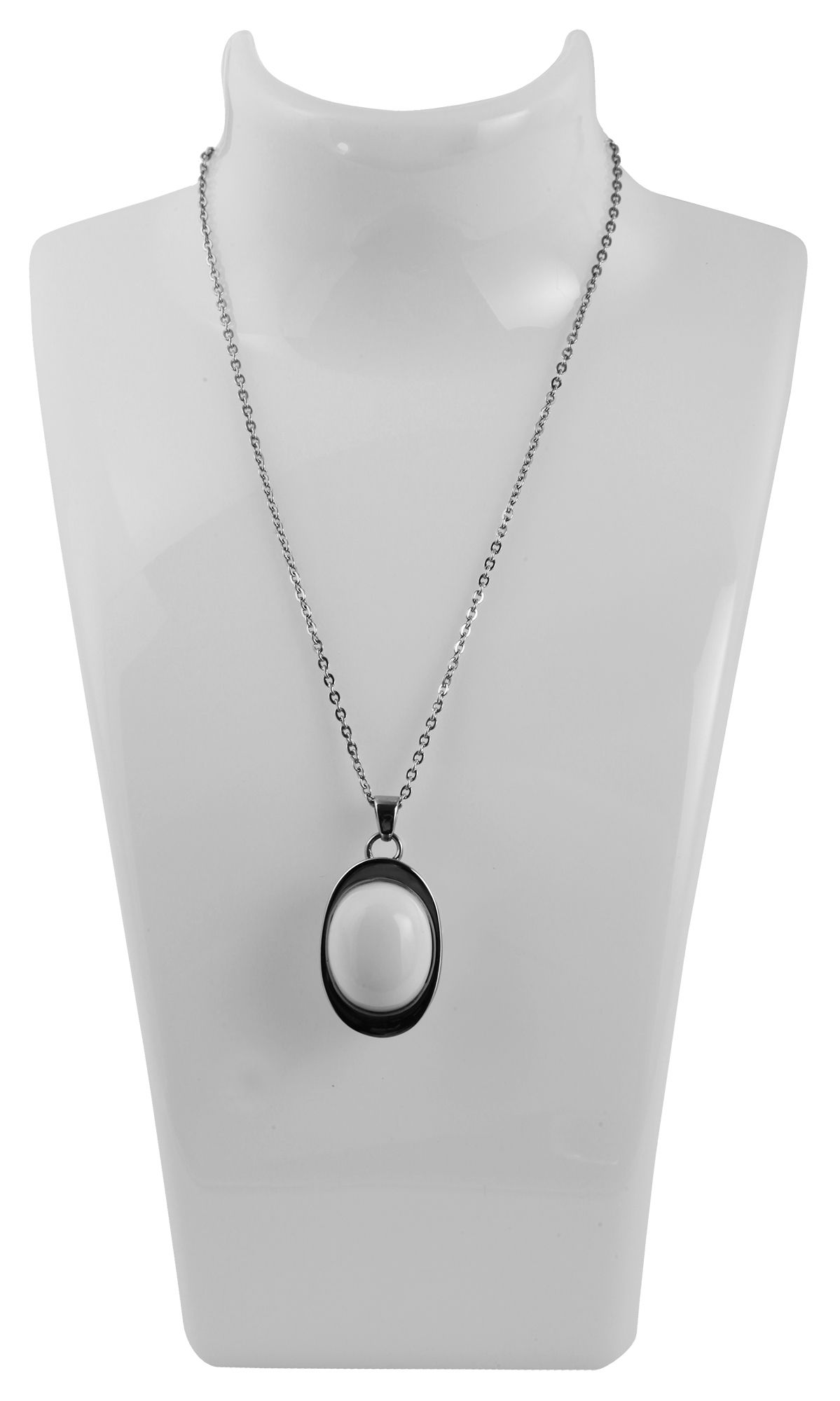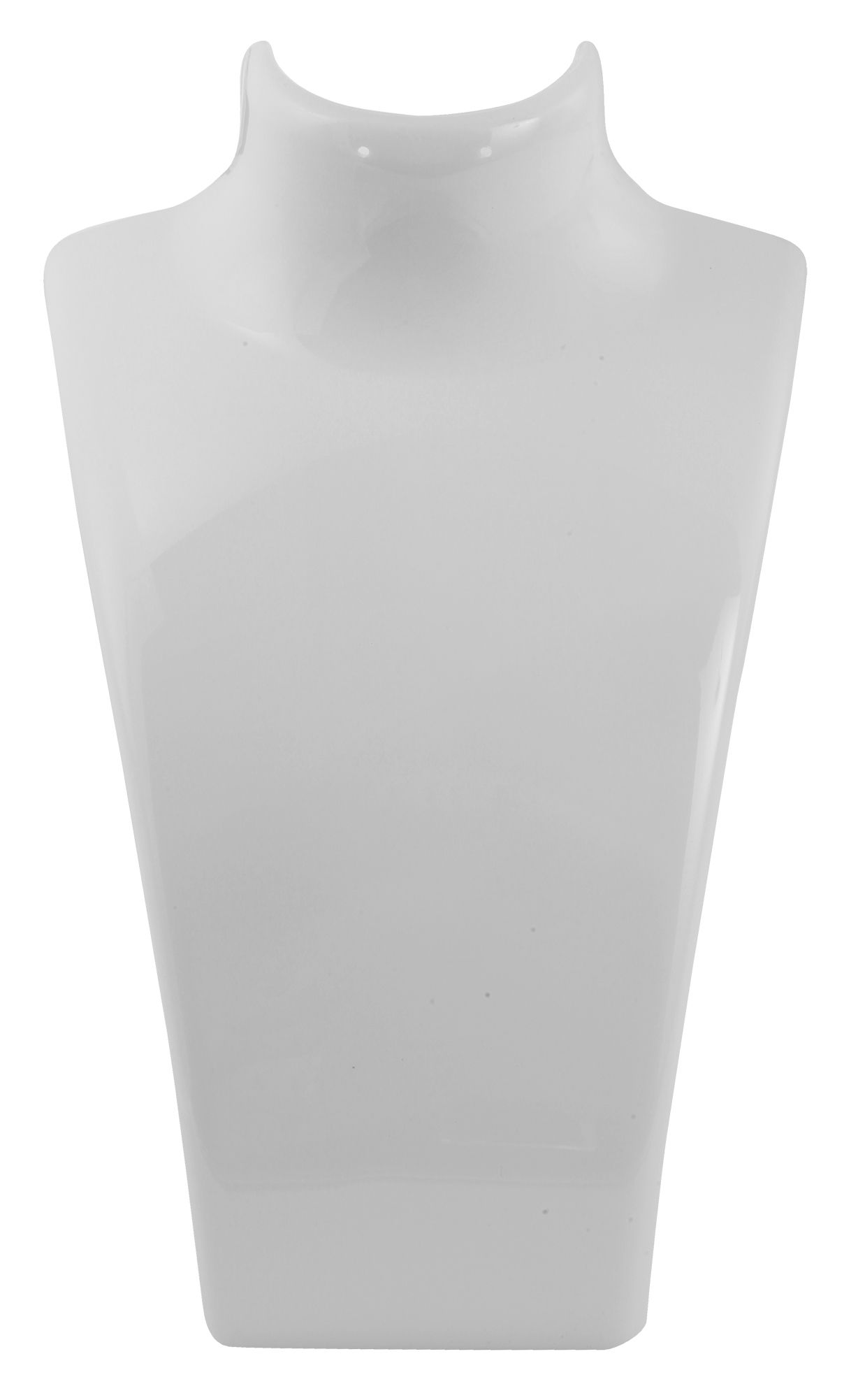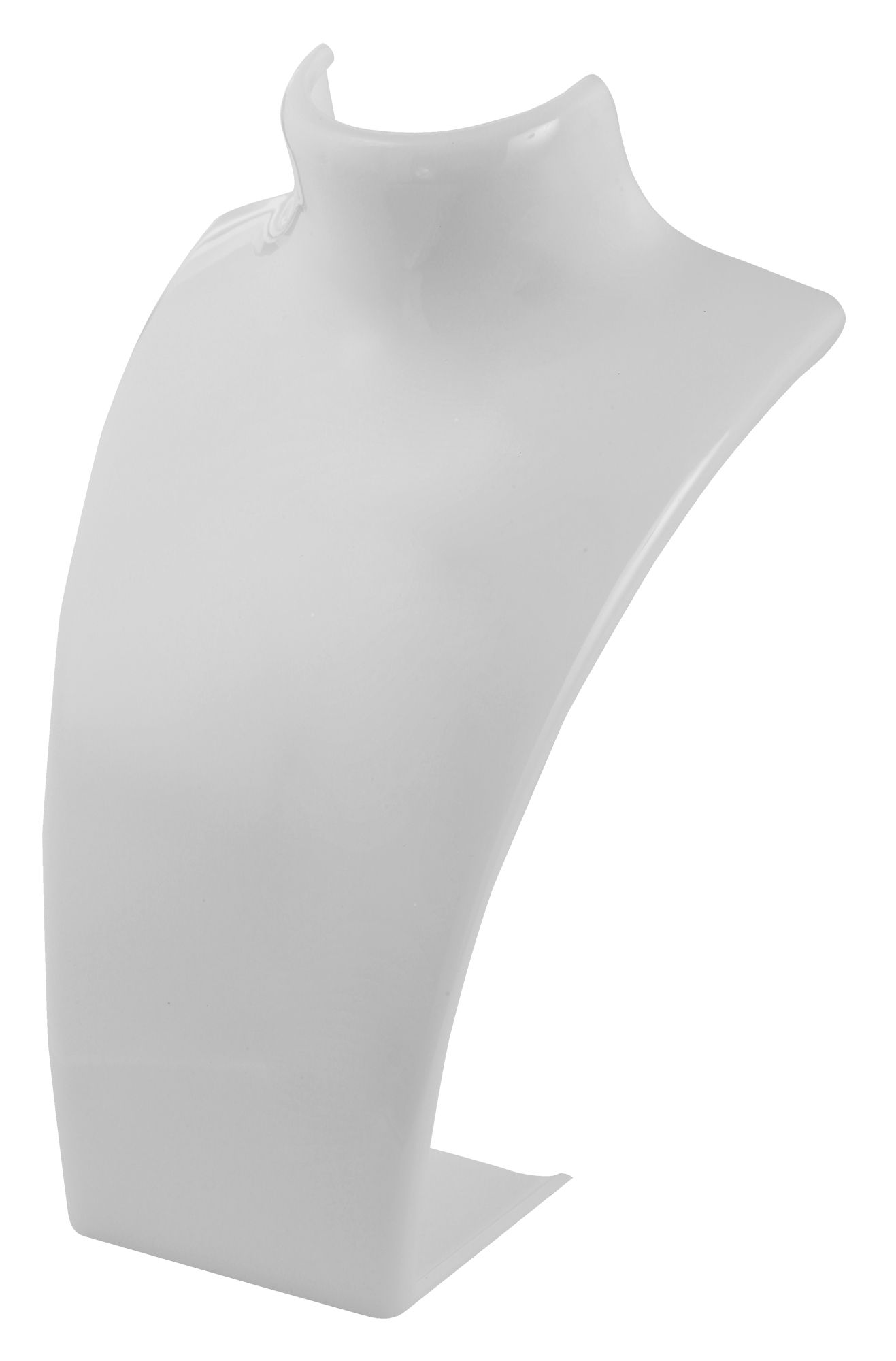 De witte plastic buste is een eenvoudige buste die geschikt is voor het tonen van kettingen en kettingen. Hij staat op een 6 cm lange, stevig verbonden voet en is over het geheel licht naar achteren gebogen. De sieraden liggen in de perfecte hoek op de buste zodat ze optimaal gepresenteerd kunnen worden. Daarnaast heeft de buste twee gaten in de 'nek' om verschillende soorten sieraden te kunnen bevestigen. De buste is 20,5 cm hoog, 13,5 cm breed en 12 cm lang. De buste is verkrijgbaar in zwart en wit. Het is een makkelijke manier om kettingen en kettingen optimaal te presenteren.