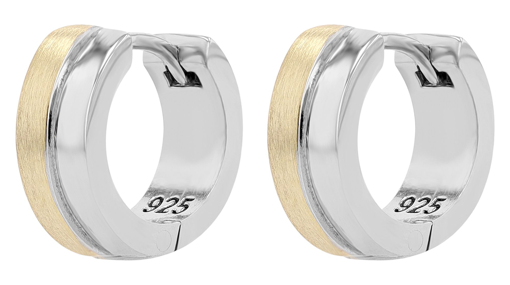 Productinformatie "925/- Echt Silber Klapp-Creolen "Clavel", rhodiniert, bicolor"
