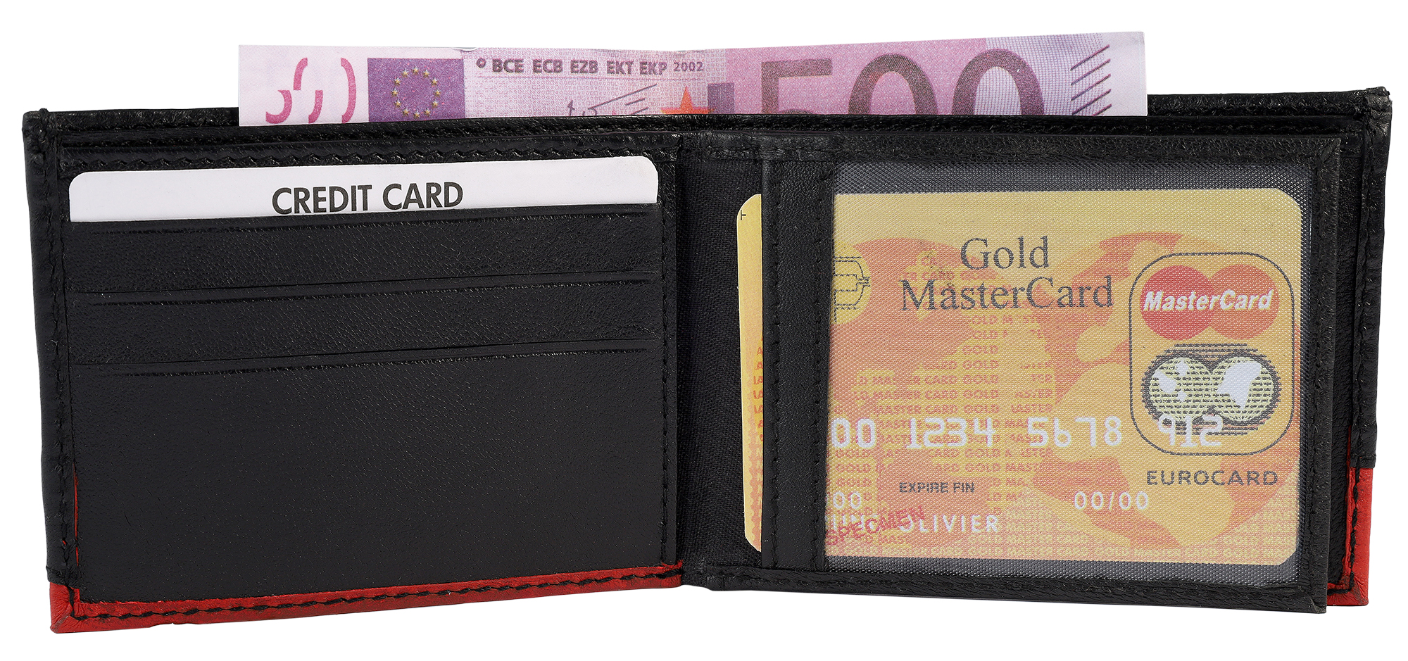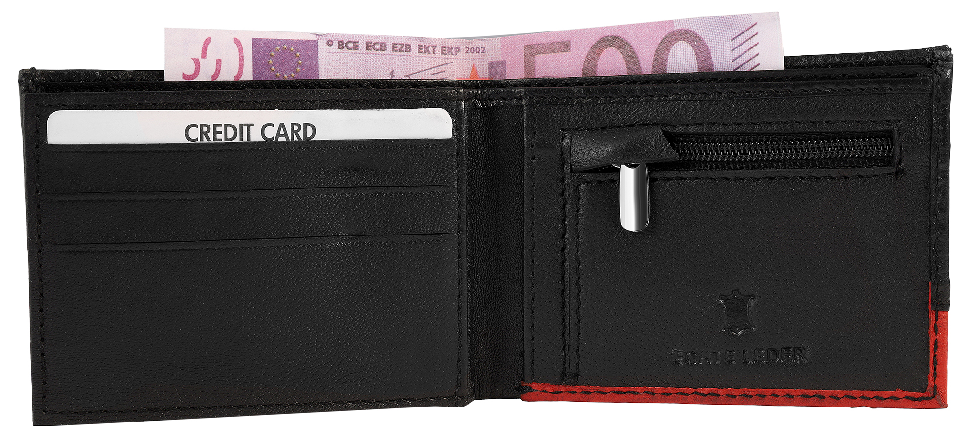 Productinformatie "Steinmeister Echt Leder Minigeldbörse, Querformat, schwarz/ rot"