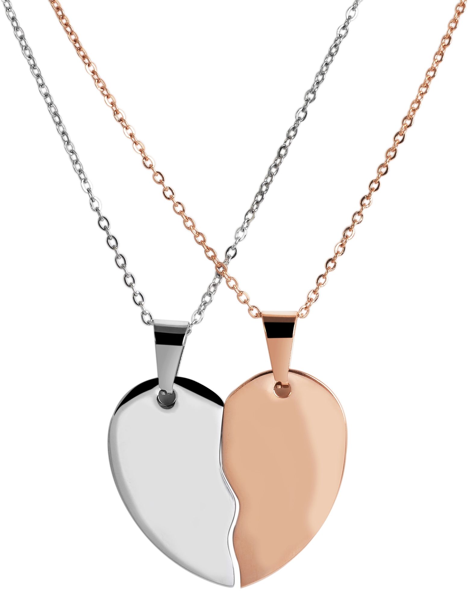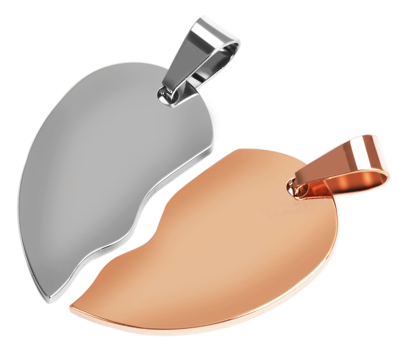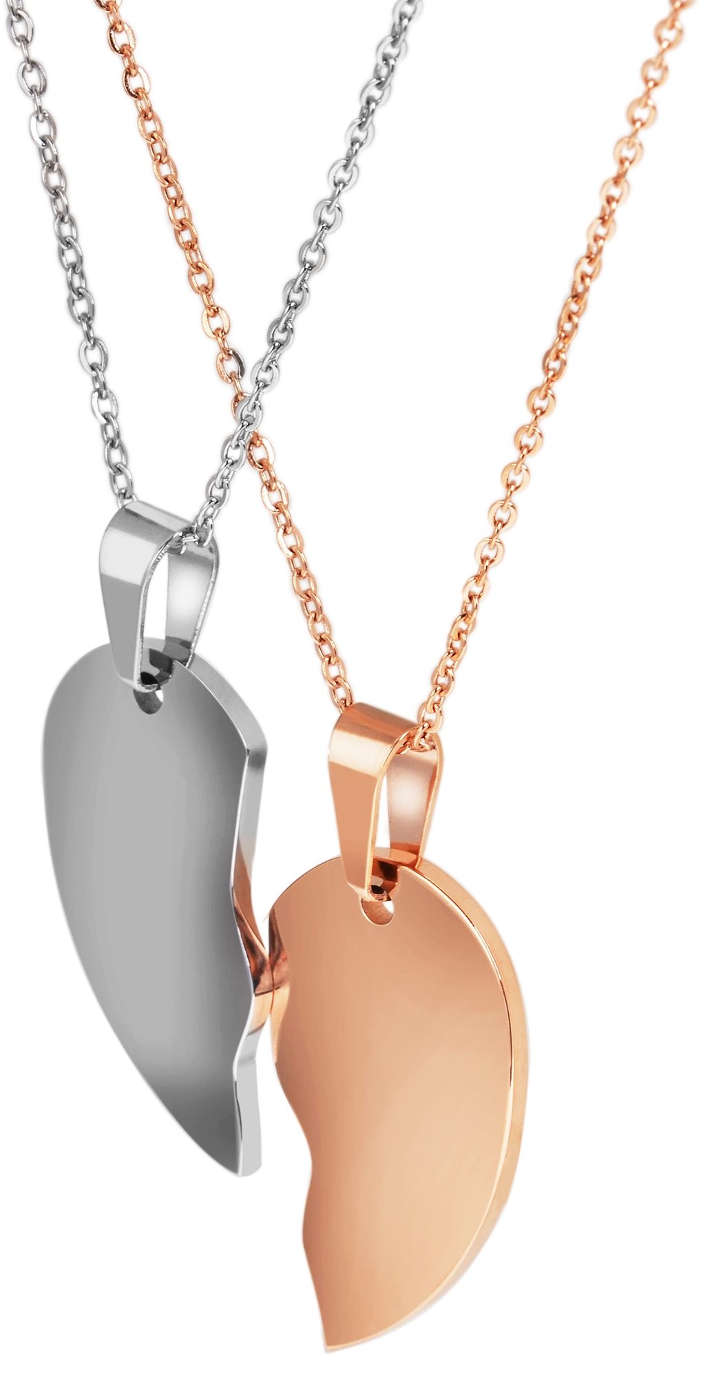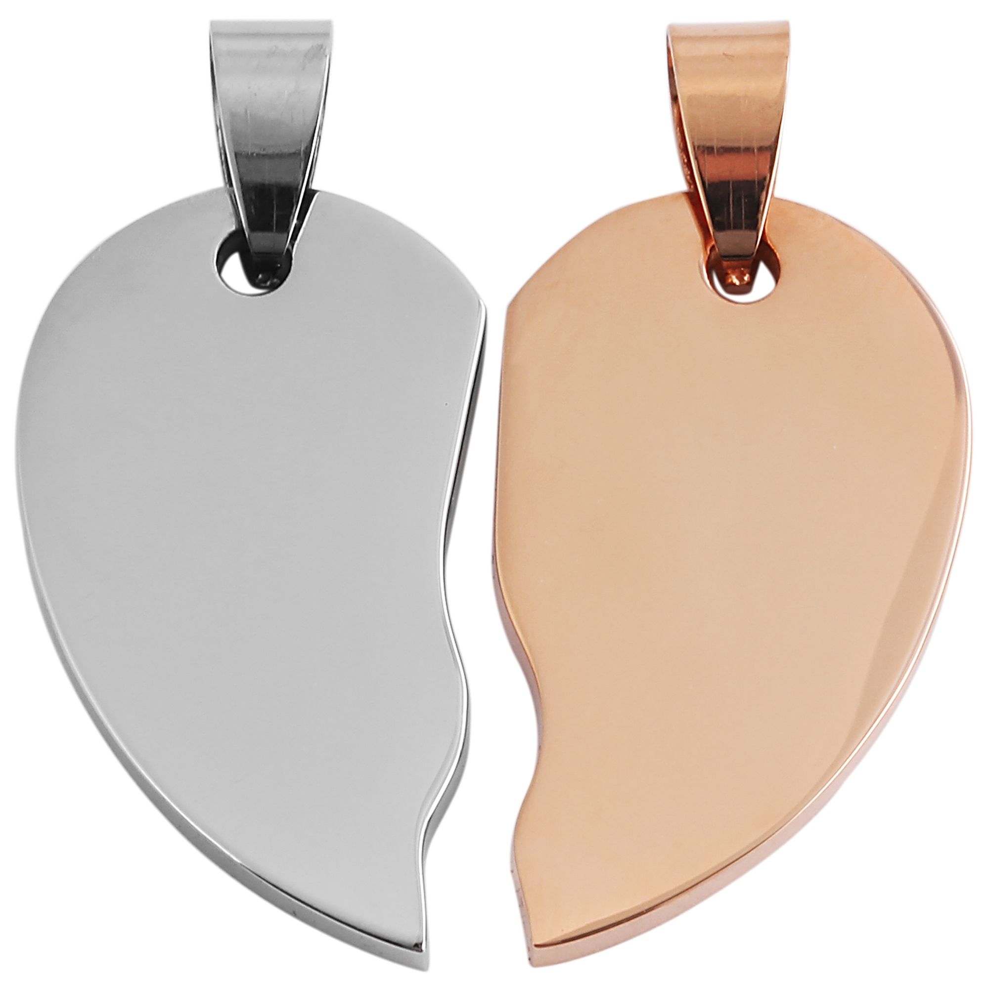 Productinformatie "Akzent Edelstahl Partneranhänger, Gravur, herzförmig, silber- & roségoldfarben"