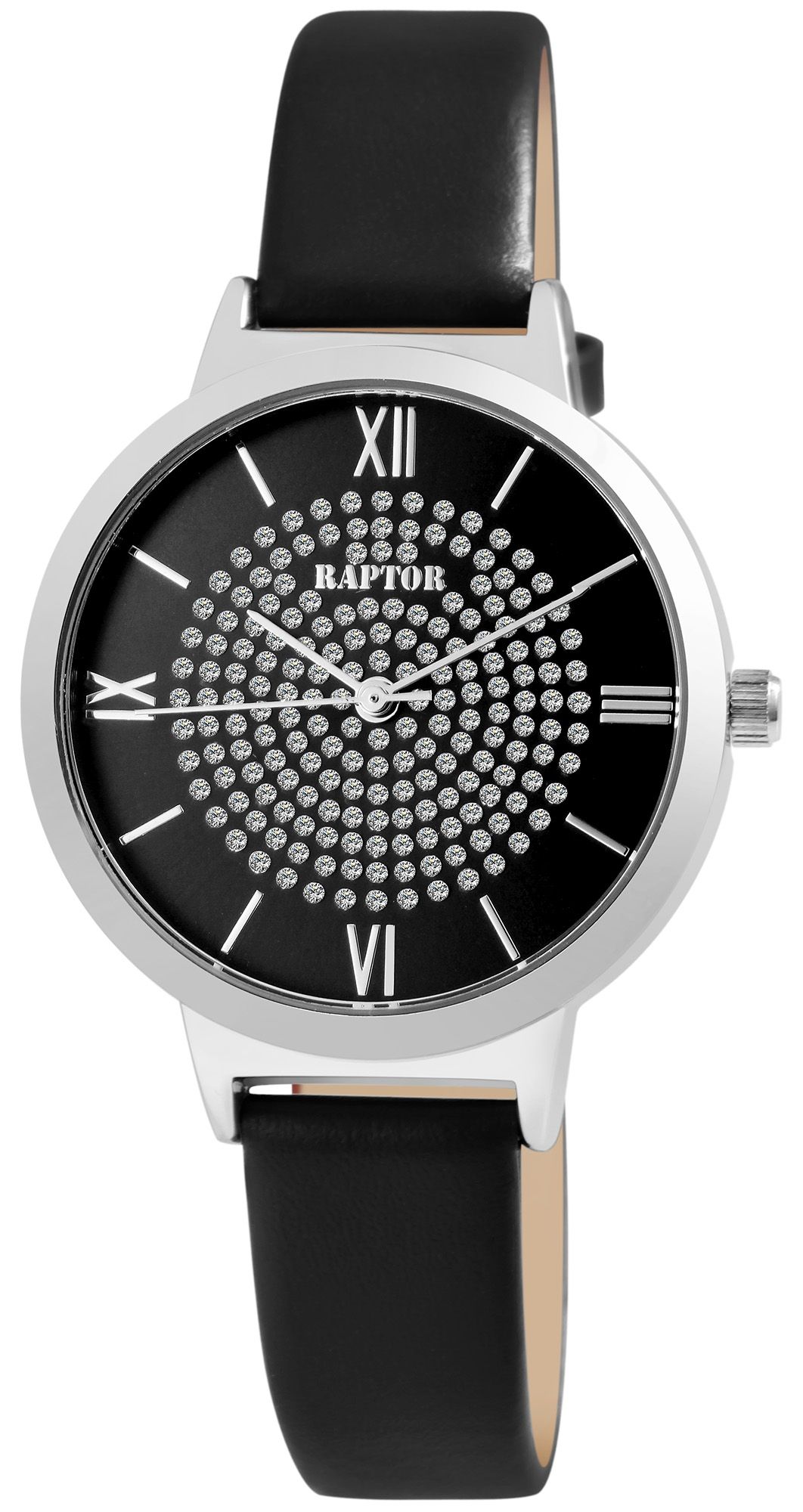 Productinformatie "Raptor dameshorloge "Tess" met echt lederen band, zwart/zilverkleurig"