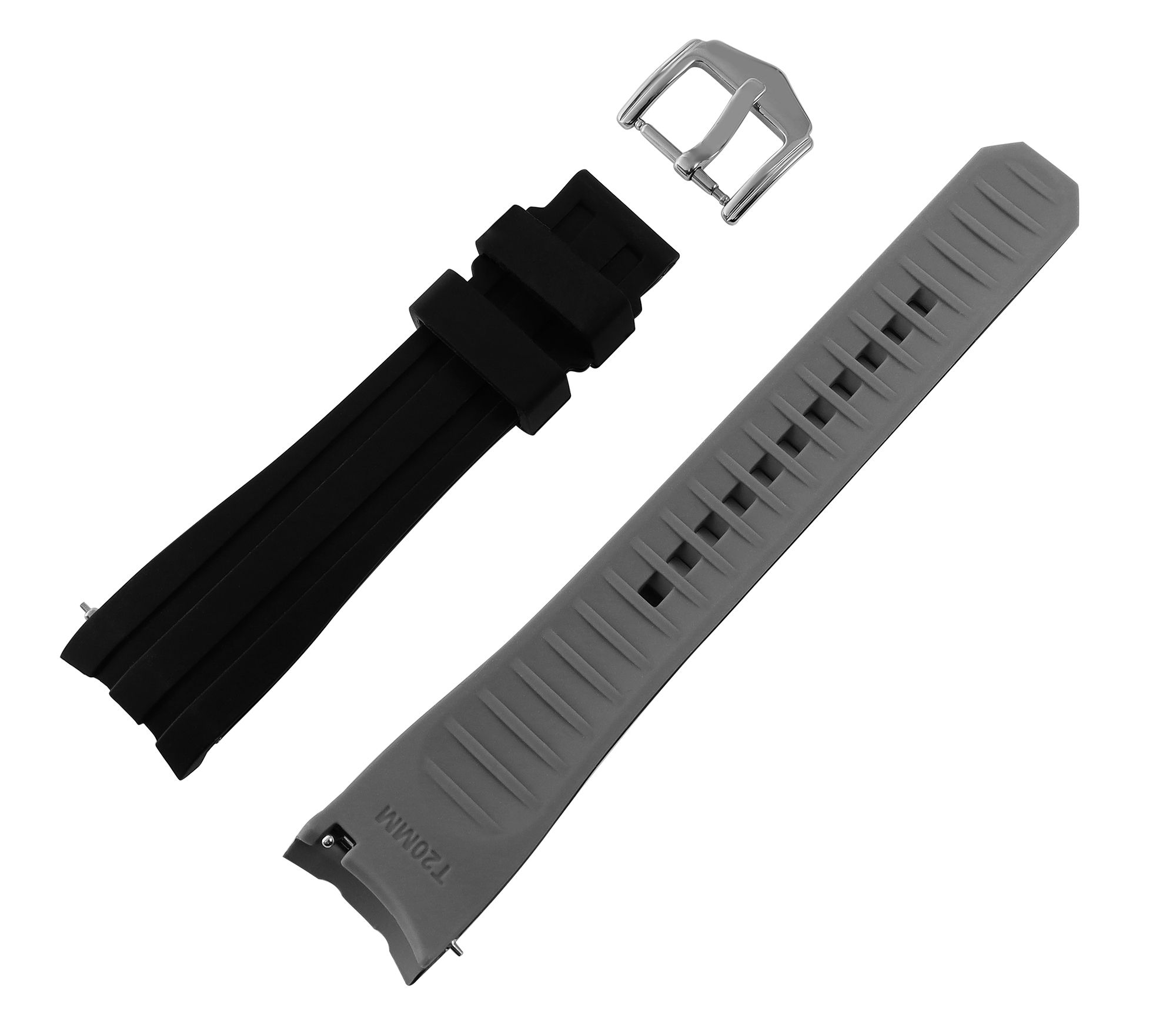 Productinformatie "Snelwisselband voor horloges, silicone, gesp, zwart/grijs, 18 mm"