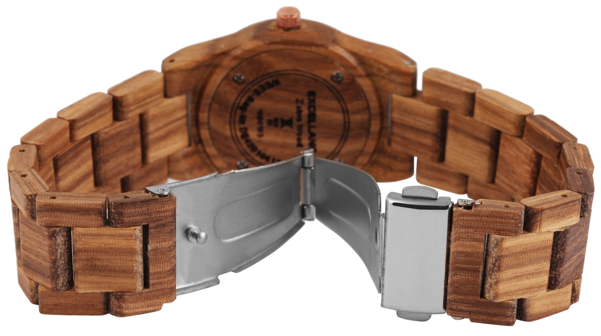 Productinformatie "Excellanc Damenarmbanduhr aus Zebraholz Gliederarmband"