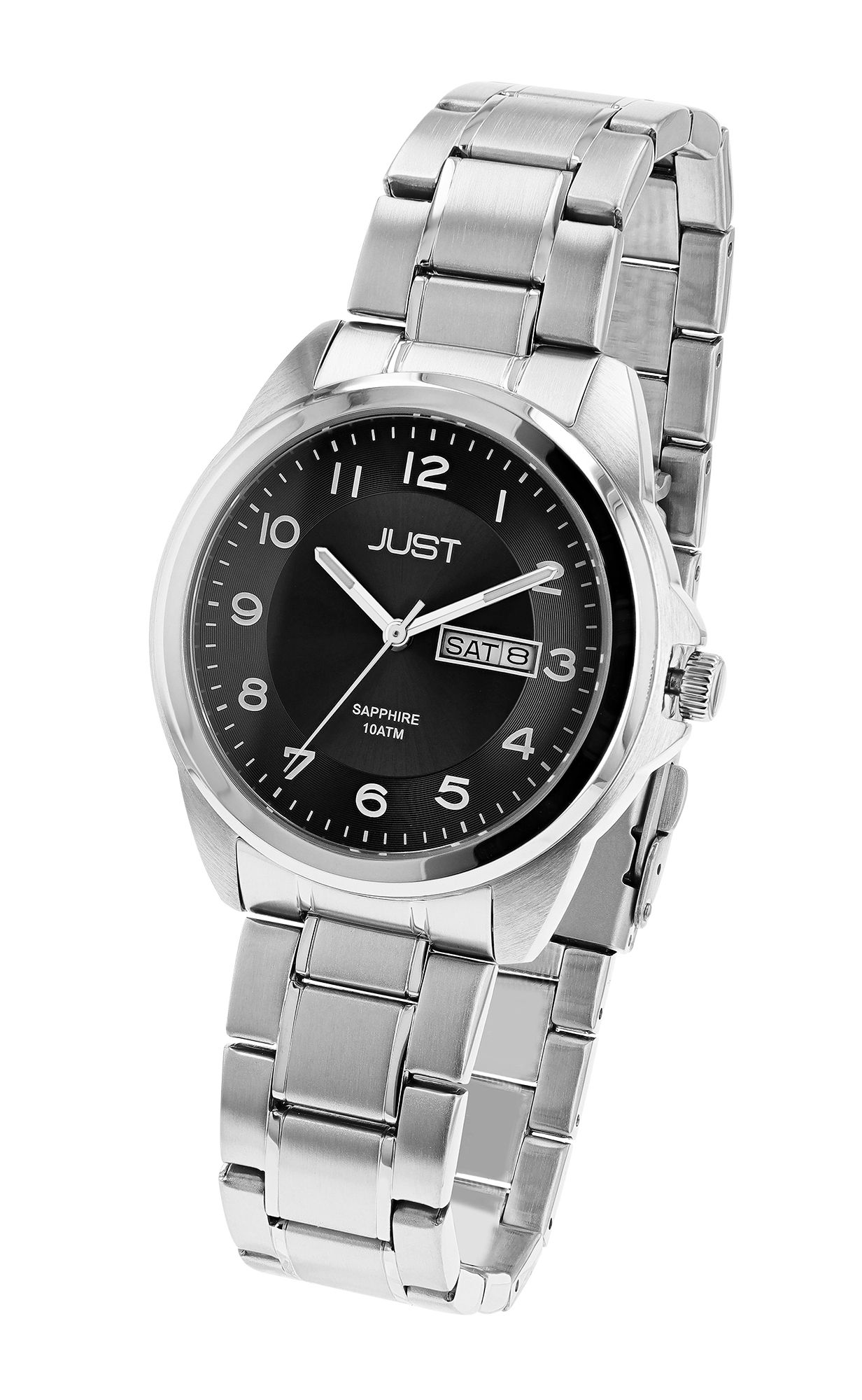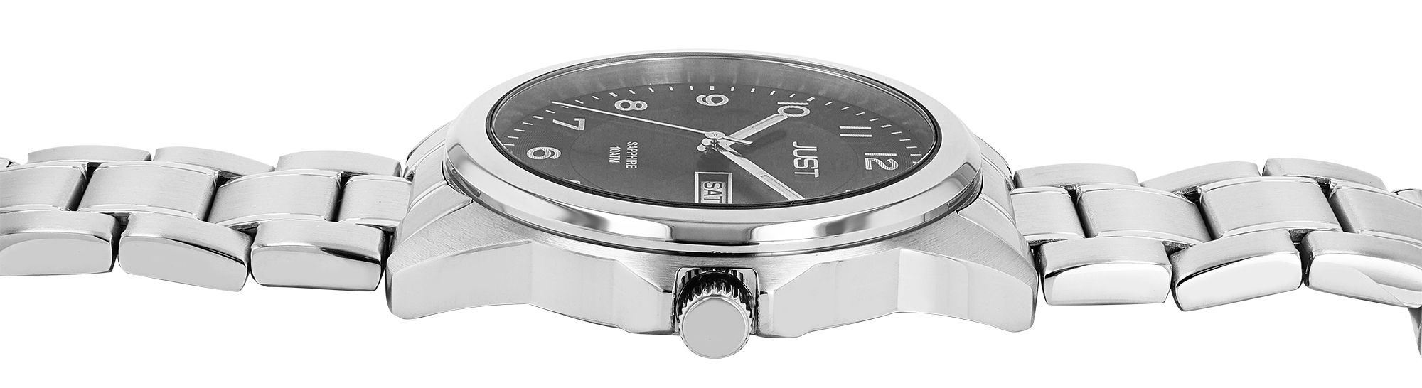 Productinformatie "JUST "Mads" Herren Edelstahluhr mit Edelstahlband und Saphirglas, 10 ATM, graues ZB"