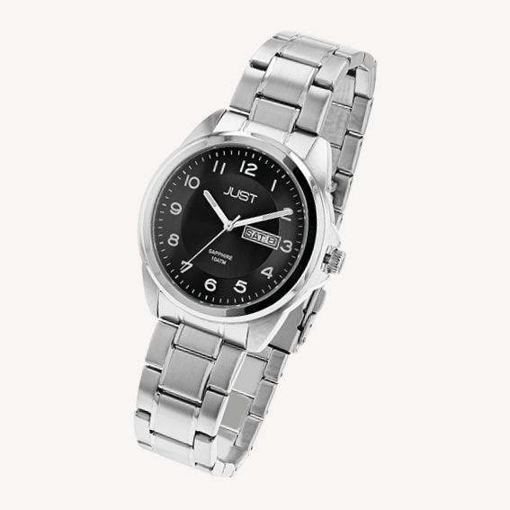 Het JUST roestvrijstalen polshorloge voor heren heeft duidelijke Arabische cijfers om de tijd gemakkelijk af te lezen. Naast de tijd laat dit horloge ook de datum en de dag van de week zien. Met een totale lengte van 22 cm biedt dit horloge een comfortabele pasvorm voor dagelijks gebruik. De roestvrijstalen kast heeft een diameter van 40 mm en is 10 mm hoog. De achterkant van de kast is ook van roestvrij staal. Het saffierglas zorgt voor een betrouwbare krasbestendigheid en duurzaamheid van de wijzerplaat. De 20 mm brede roestvrijstalen schakelarmband is veilig bevestigd met een vouwsluiting. Met een waterdichtheid van 10 bar is dit horloge ook geschikt voor activiteiten zoals handen wassen of zwemmen. Over het geheel genomen combineert het JUST horloge met roestvrijstalen band voor heren functionaliteit, stijl en duurzaamheid in een tijdloos ontwerp.