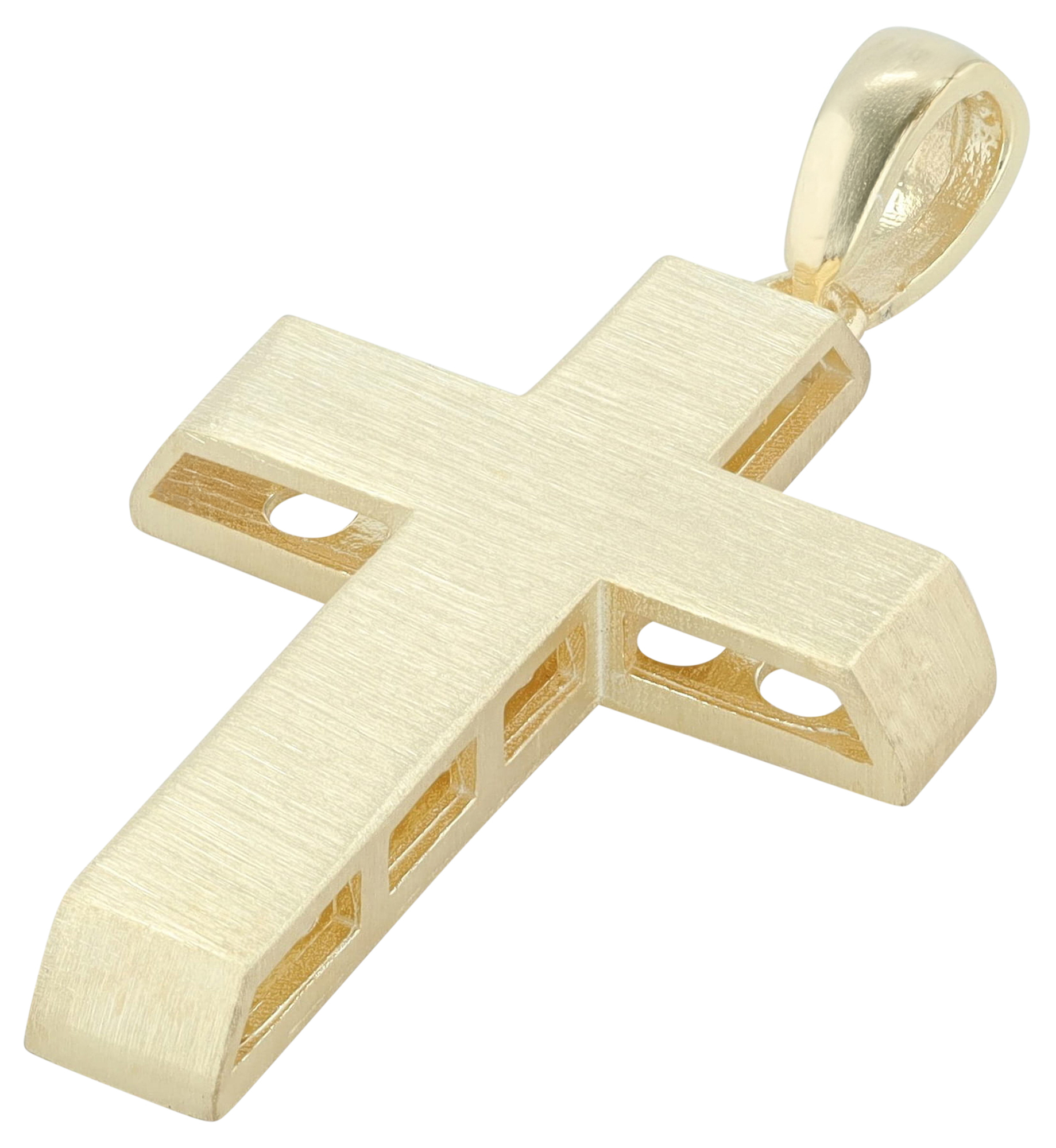 Met zijn krachtige look meet de hanger 32,5 x 21 x 4 mm (totale lengte met oogje 3,9 cm). De mat geborstelde afwerking geeft het kruis een moderne touch, terwijl de afgeschuinde randen een bijzondere diepte creëren. Ondanks de dikte van 4,5 mm blijft de hanger comfortabel om te dragen omdat hij hol is aan de binnenkant. De rasterlook aan de zijkant zorgt voor geraffineerde accenten en geeft het kruis een dynamische structuur.
