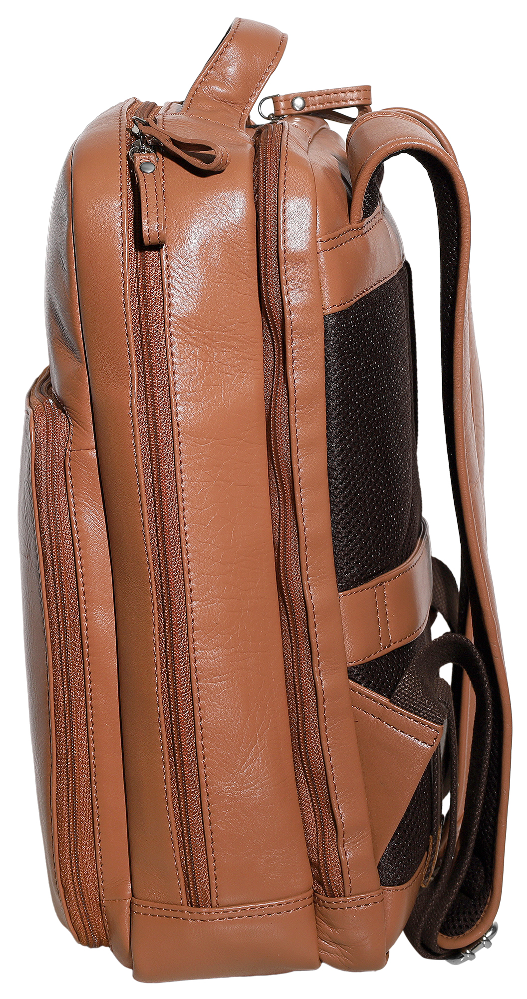 Deze hoogwaardige rugzak van echt leer maakt indruk met zijn doordachte indeling, die niets te wensen overlaat voor dagelijks werk, vrije tijd en reizen.
