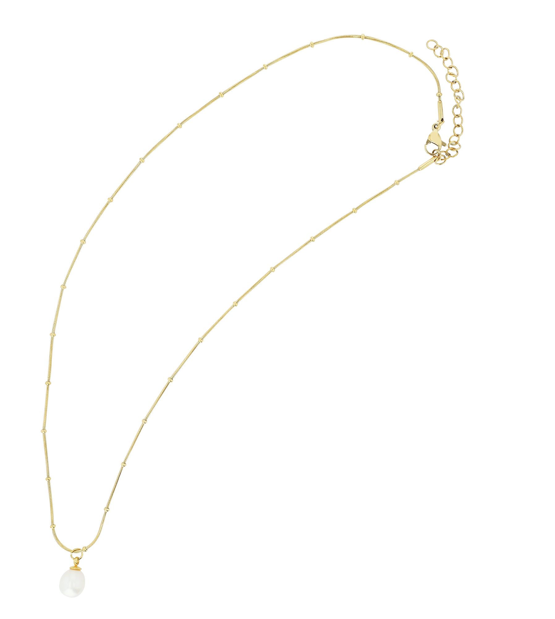 Onze halsketting met zoetwaterparel is gemaakt van hoogwaardig roestvrij staal en belichaamt niet alleen tijdloze elegantie, maar ook een lange levensduur en duurzaamheid. Roestvrij staal is bestand tegen corrosie en aantasting, waardoor de ketting zijn stralende schoonheid zelfs na langdurig dragen behoudt. De ketting heeft een lengte van 45 cm, met een extra verlengkettinkje van 5 cm voor maatwerk. De veilige karabijnsluiting zorgt niet alleen voor een stevige greep, maar ook voor eenvoudige bediening. Het middelpunt van dit betoverende collier is de zoetwaterparelhanger van 12 x 8 mm. De zoetwaterparel straalt natuurlijke schoonheid uit en verleent het collier een zachte elegantie. Elke parel is uniek met een unieke glans en een delicate kleurschakering.
