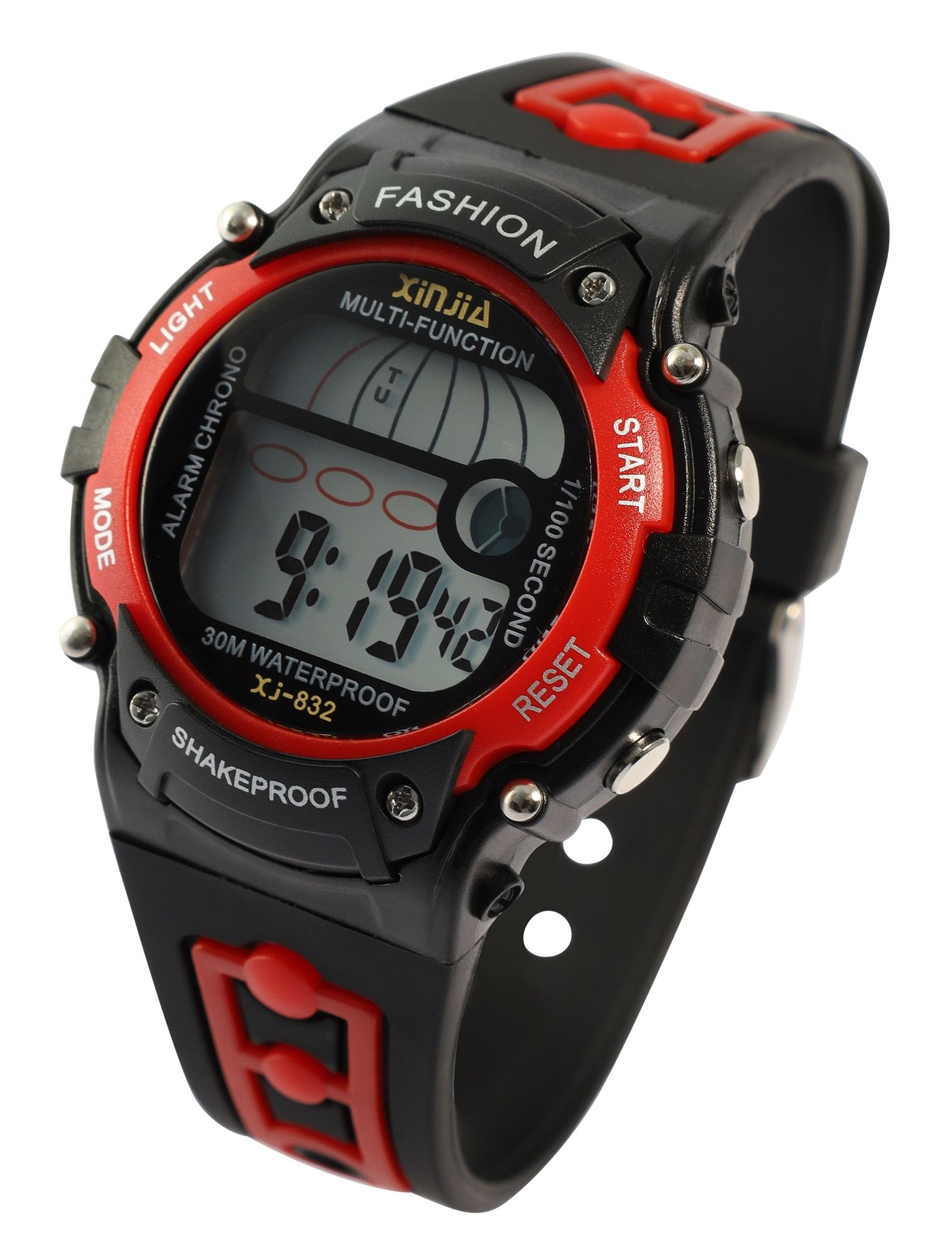 Xinjia digitaal horloge met TPU band, zwart + rood